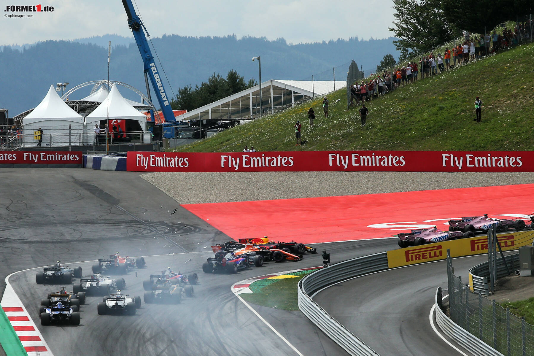"Dann war nichts mehr zu kontrollieren, weil ich über alle vier Räder gerutscht bin. Leider war dann dort das andere Auto im Weg, dem ich nicht mehr ausweichen konnte", sagt Kwjat. "Da kam halt von hinten einer zu schnell an", so die Perspektive von Alonso. "Ich wurde dann getroffen. Leider musste ich aussteigen. Das ist schade, aber lässt sich nicht ändern. Manchmal riskieren die Jungs dort hinten zu viel." Während der Spanier schulterzuckend ins Motorhome verschwand, trauerte Verstappen nicht nur einem möglicherweise starken Ergebnis beim Red-Bull-Heimspiel nach, sondern litt auch mit den zahlreichen Fans.