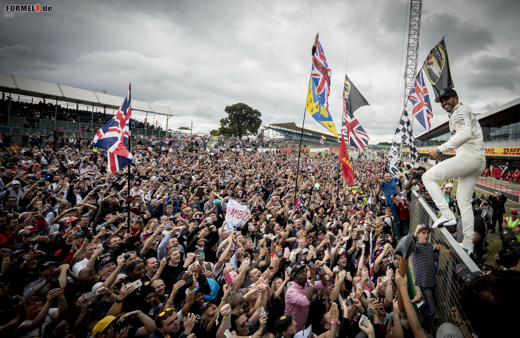 Von Buh-Rufen wie noch in London hörte man in Silverstone nichts. Die ganze Grafschaft Northamptonshire war der Hamilton-Manie verfallen. Als der Mercedes-Pilot nach seinem Sieg das Podium betrat, jubelte ihm die Menge zu, als sei in der Woche nichts Ungewöhnliches vorgefallen. "Die Unterstützung war wahnsinnig. Die Flaggen, die Energie - das war alles bemerkenswert", stammelt Hamilton nach dem Rennen überwältigt.
