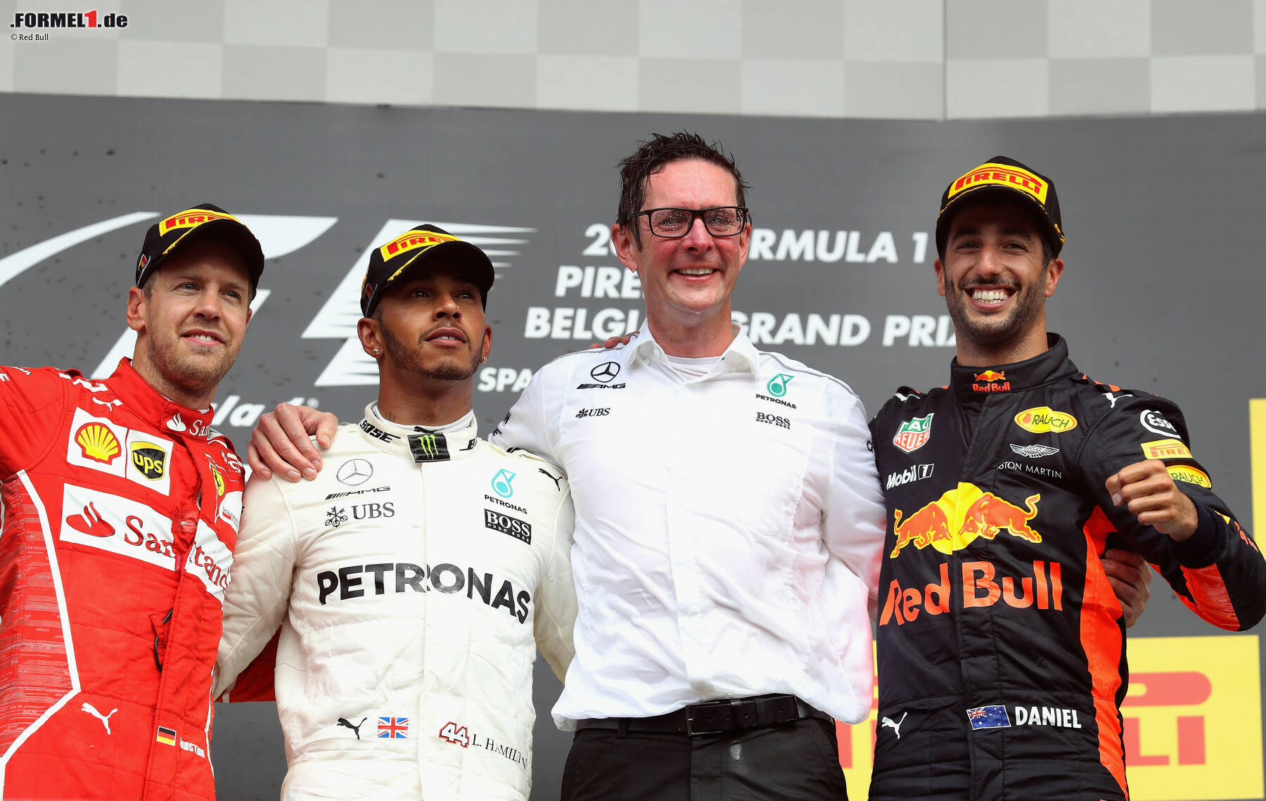 (Motorsport-Total.com) - Lewis Hamilton hat den Grand Prix von Belgien gewonnen und hält damit die Formel-1-WM 2017, in der er nun nur noch sieben Punkte Rückstand auf Sebastian Vettel hat, offen. Der Mercedes-Fahrer gewann das Rennen in Spa-Francorchamps 2,4 Sekunden vor seinem Ferrari-Rivalen und 10,8 Sekunden vor Daniel Ricciardo (Red Bull).