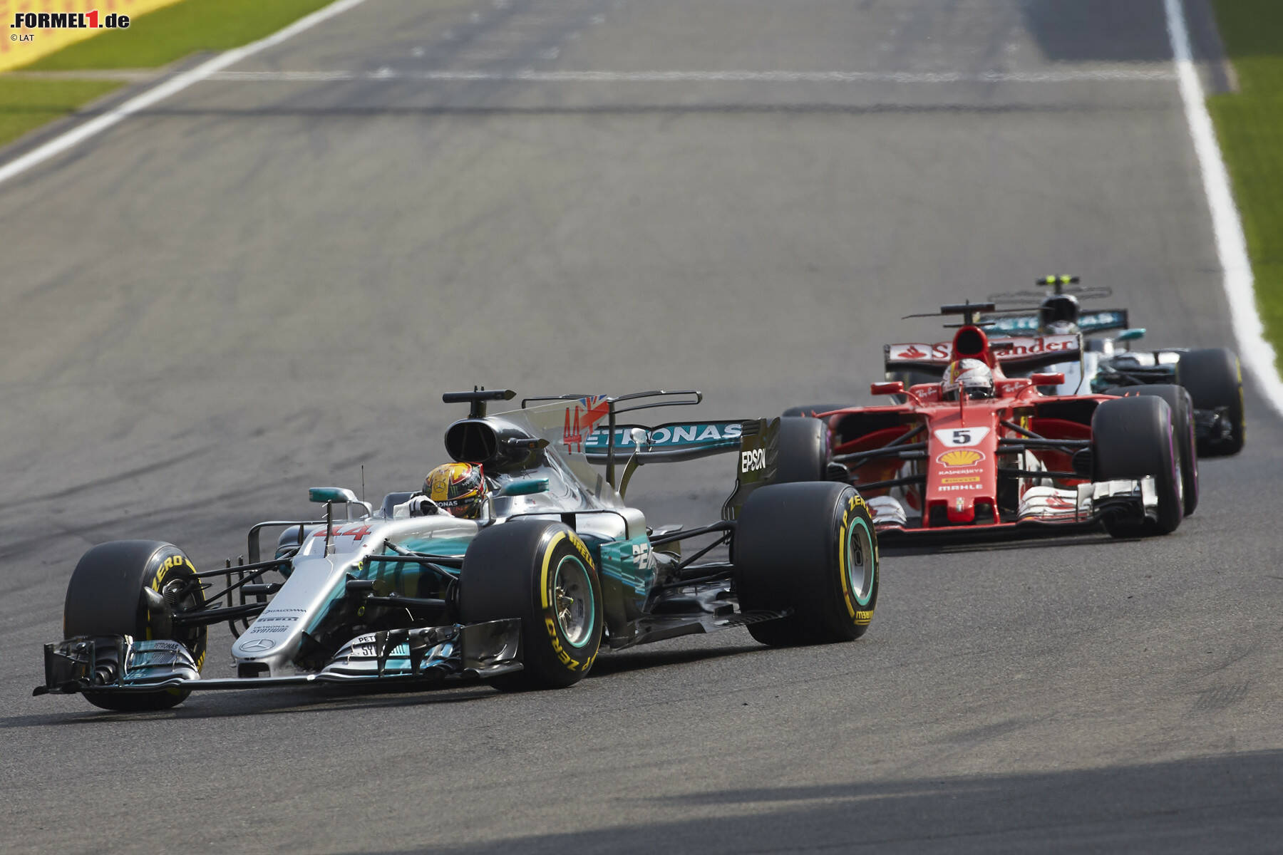 (Motorsport-Total.com) - Lewis Hamilton hat den Grand Prix von Belgien gewonnen und hält damit die Formel-1-WM 2017, in der er nun nur noch sieben Punkte Rückstand auf Sebastian Vettel hat, offen. Der Mercedes-Fahrer gewann das Rennen in Spa-Francorchamps 2,4 Sekunden vor seinem Ferrari-Rivalen und 10,8 Sekunden vor Daniel Ricciardo (Red Bull).