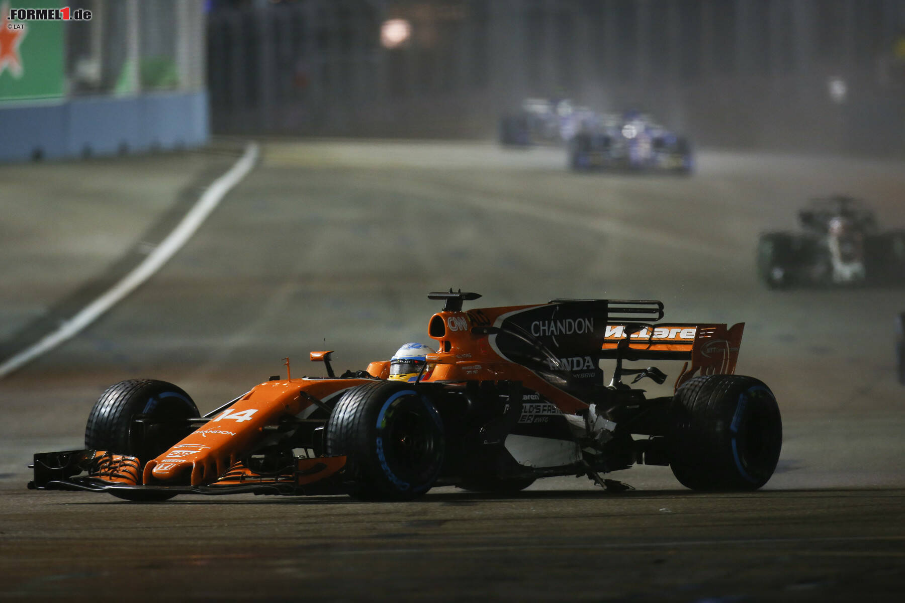 Das endgültige Aus für Alonso: "Fernando, we need to retire the car." Letztendlich wegen eines gebrochenen Auspuffs. Immerhin holt Teamkollege Stoffel Vandoorne, der immer besser in Fahrt kommt, als Siebter weitere WM-Punkte für McLaren.