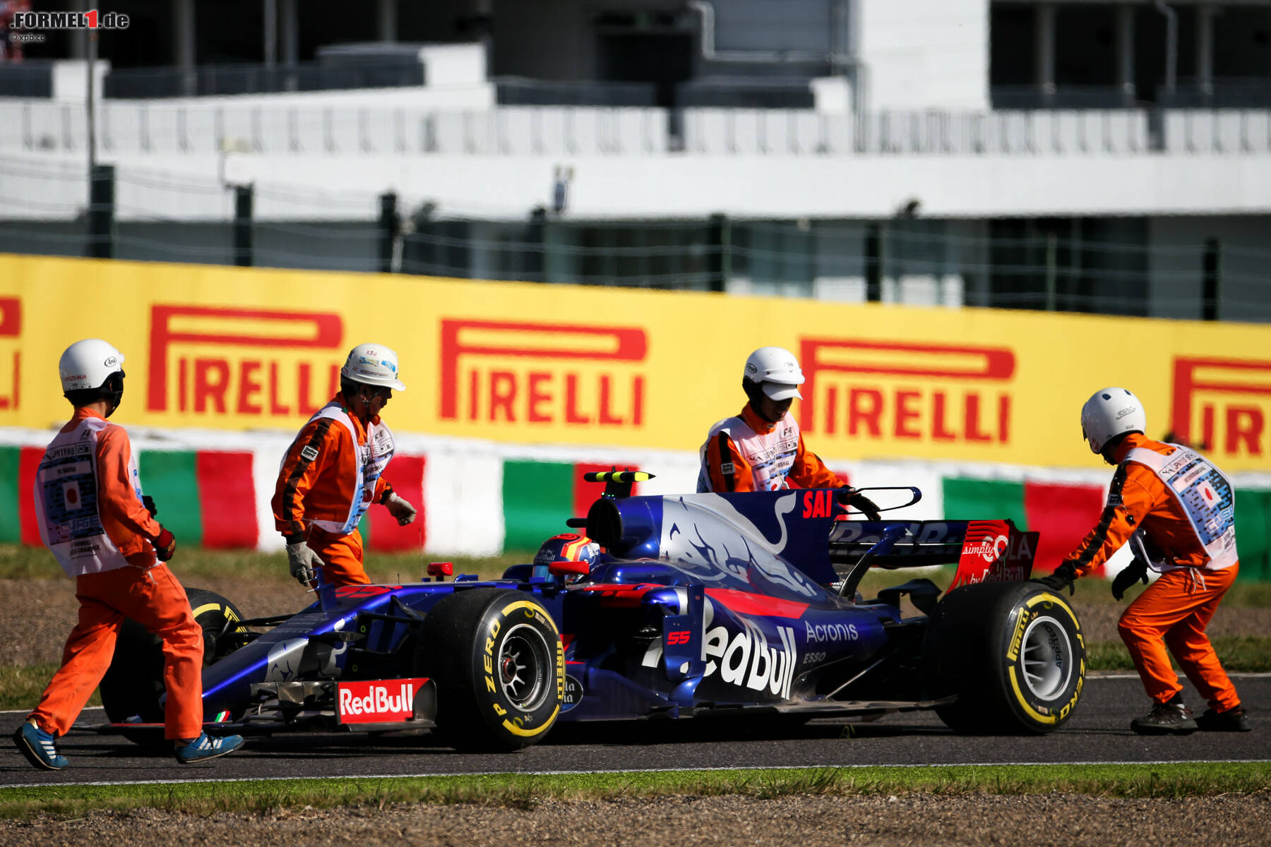 Der Grund für die zwei Runden hinter dem Safety-Car ist der ungewohnt stümperhaft anmutende Abflug von Carlos Sainz in seinem letzten Rennen für Toro Rosso. Wirklich nur Zufall, dass sein neuer Arbeitgeber Renault direkter Gegner in der Konstrukteurs-WM ist? Ein Schelm, wer Böses dabei denkt ...