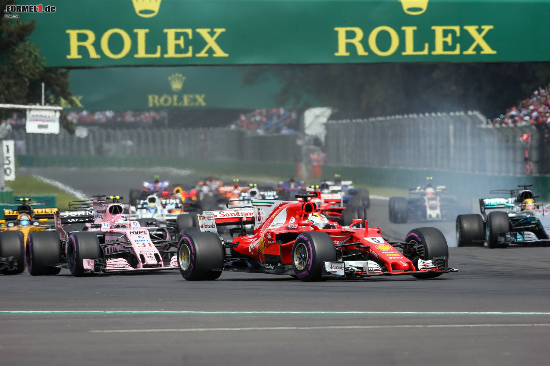 Der Mercedes erleidet sofort einen Reifenschaden und muss das ganze Feld an sich vorbeiziehen lassen, bevor er in die Box fahren kann. Auch Vettel stattet seiner Crew einen Besuch ab und tauscht seinen kaputten Frontflügel aus. Dadurch fallen die WM-Rivalen aber ganz ans Ende des Feldes.