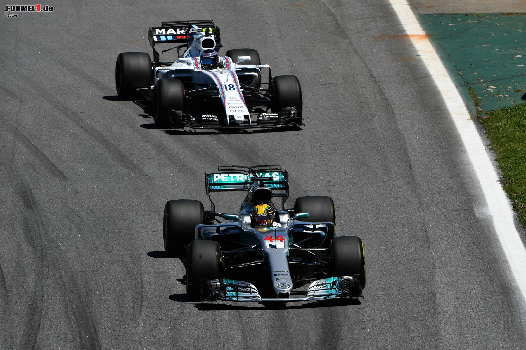 Die Daten untermauern die These des Weltmeisters: Bevor er im 40. Umlauf hinter den im Zweikampf befindlichen Lance Stroll (Williams) und Romain Grosjean (Haas) auftauchte, lag sein Vorsprung auf Verfolger Sebastian Vettel bei 3,8 Sekunden. Den Wert hatte Hamilton zuvor über mehrere Runden gehalten, obwohl der Ferrari-Rivale zu diesem Zeitpunkt auf den frischeren Soft-Reifen unterwegs war. Die Hinterbänkler machten brav Platz machten, doch Hamilton verlor viel Zeit.