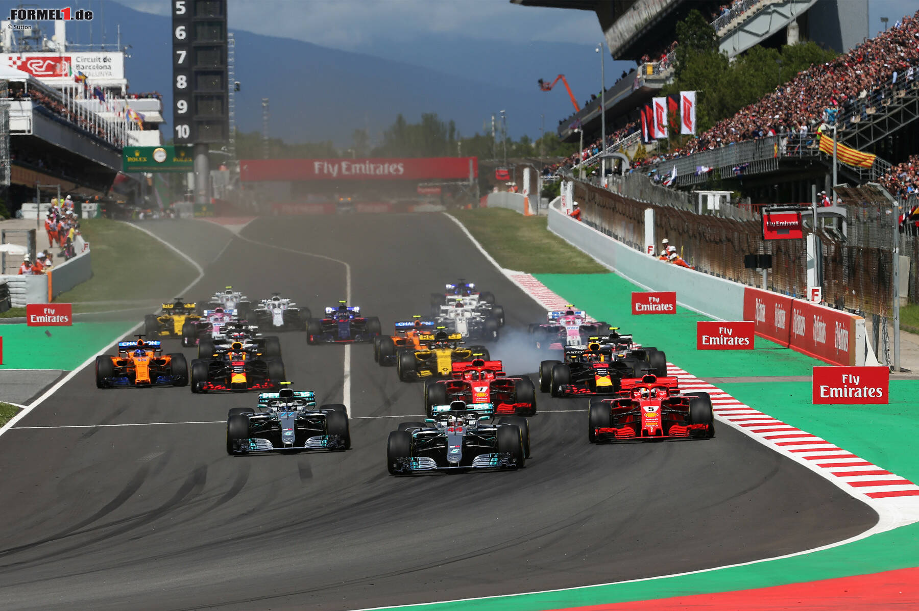 Aber da hatte Vettel auf der Außenbahn schon die Nase vorne. Möglicherweise auch, weil sich die Mercedes-Fahrer untereinander nicht sicher waren, wie sie sich mit dem Windschatten am besten gegenseitig helfen können. Und weil Bottas den Windschatten von Polesetter Hamilton nicht für sich nutzte, saugte sich Vettel an Hamiltons Getriebe heran und nahm den Schwung in die erste Kurve mit. Das war zwischen Hamilton und Bottas sogar im Podium-Room ein Thema.