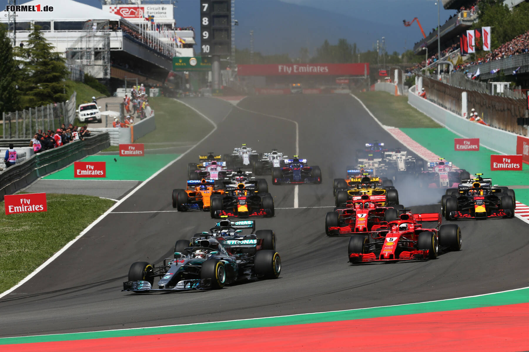 Aber da hatte Vettel auf der Außenbahn schon die Nase vorne. Möglicherweise auch, weil sich die Mercedes-Fahrer untereinander nicht sicher waren, wie sie sich mit dem Windschatten am besten gegenseitig helfen können. Und weil Bottas den Windschatten von Polesetter Hamilton nicht für sich nutzte, saugte sich Vettel an Hamiltons Getriebe heran und nahm den Schwung in die erste Kurve mit. Das war zwischen Hamilton und Bottas sogar im Podium-Room ein Thema.