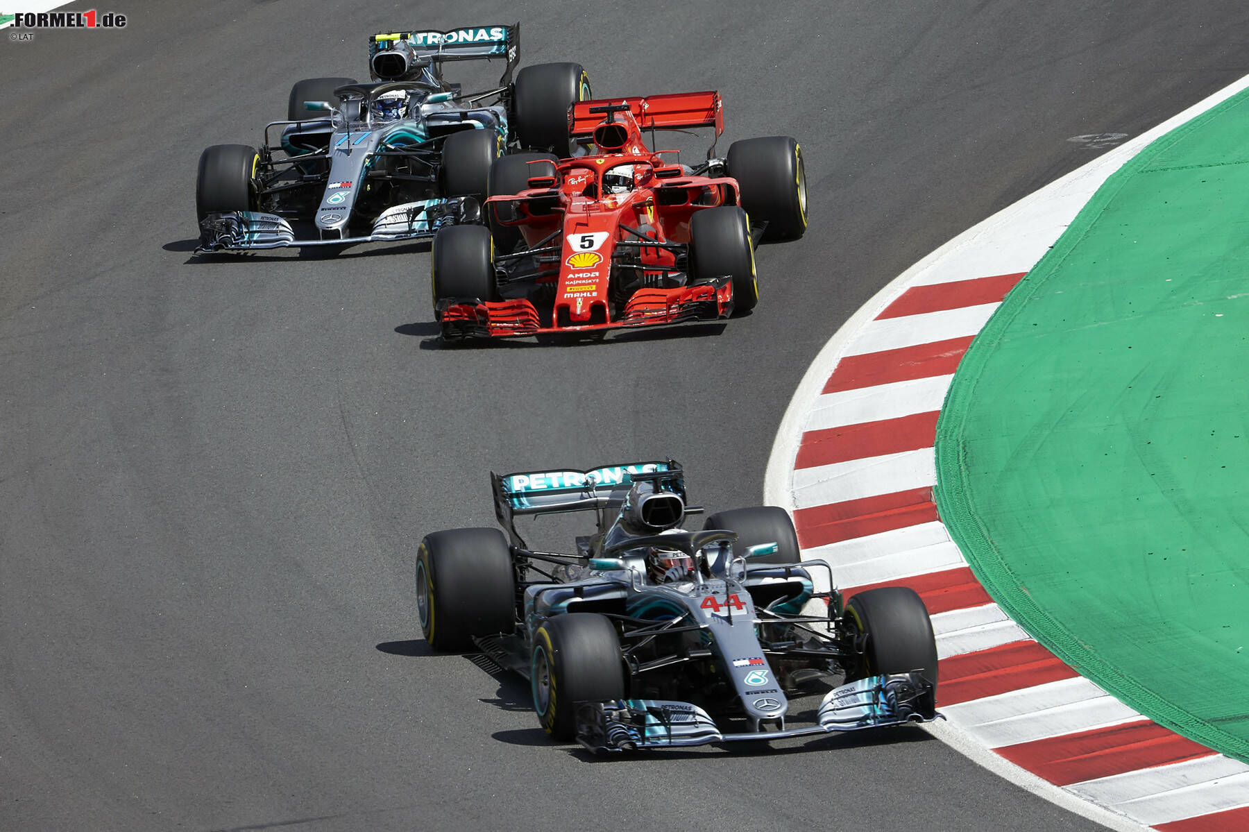 Aber da hatte Vettel auf der Außenbahn schon die Nase vorne. Möglicherweise auch, weil sich die Mercedes-Fahrer untereinander nicht sicher waren, wie sie sich mit dem Windschatten am besten gegenseitig helfen können. Und weil Bottas den Windschatten von Polesetter Hamilton nicht für sich nutzte, saugte sich Vettel an Hamiltons Getriebe heran und nahm den Schwung in die erste Kurve mit. Das war zwischen Hamilton und Bottas sogar im Podium-Room ein Thema.