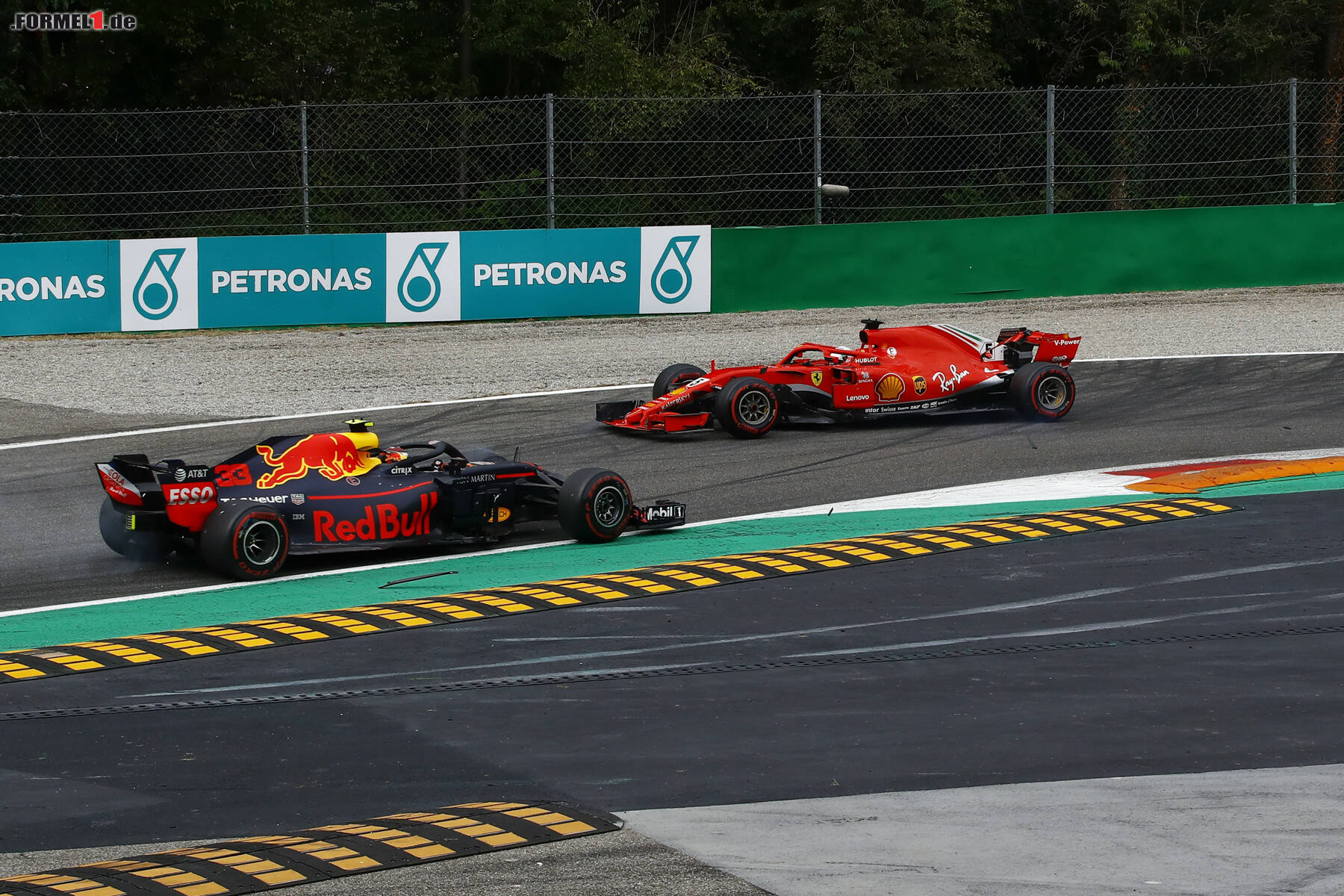 (Motorsport-Total.com) - Sebastian Vettel (Ferrari) hat einen denkbar schlechten Auftakt in den Italien-Grand-Prix (Formel 1 2018 live im Ticker) geliefert und ist bereits in der ersten Runde mit WM-Rivale Lewis Hamilton kollidiert. Bei der Anfahrt auf die zweiten Schikane bremste sich Hamilton außen neben Vettel, der anschließend in den Mercedes fuhr und sich dabei drehte.