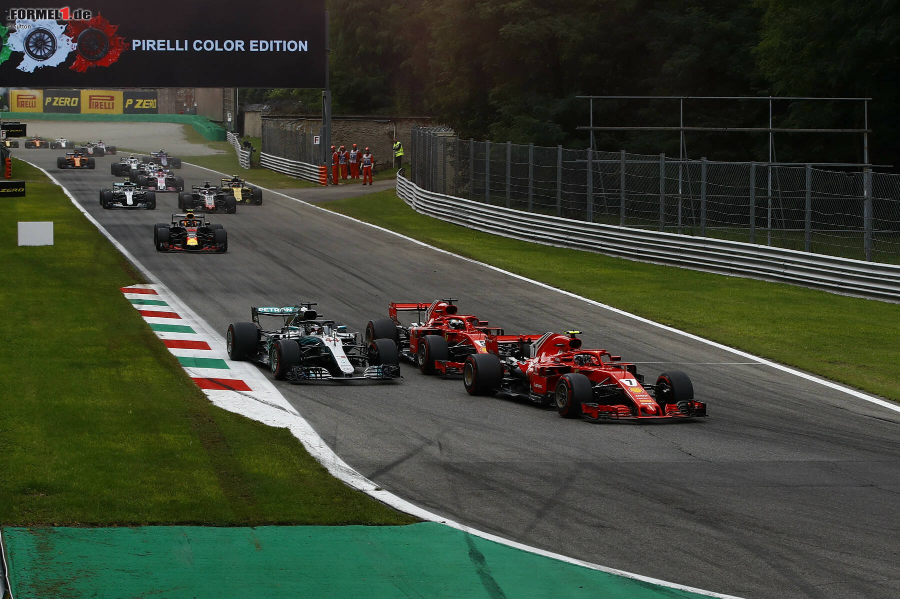Hamilton hatte zwar schon vor der ersten Schikane guten Windschatten, riskierte dort aber keine Attacke. Durch die schnelle Curva Grande hatte er dann mehr Schwung als Vettel, und während Vettel beim Anbremsen der Rettifilo Räikkönen vor der Nase hatte, hatte Hamilton auf der rechten Fahrbahnseite genug Platz, um seinen Schwung zu nutzen.
