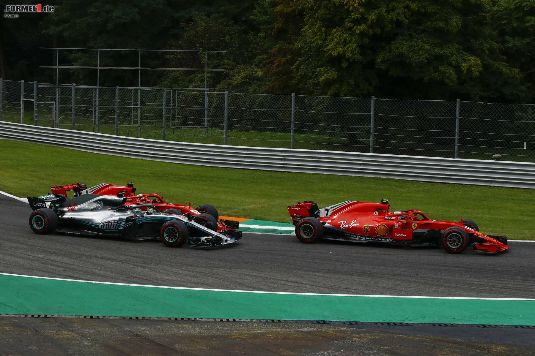Hamilton hatte zwar schon vor der ersten Schikane guten Windschatten, riskierte dort aber keine Attacke. Durch die schnelle Curva Grande hatte er dann mehr Schwung als Vettel, und während Vettel beim Anbremsen der Rettifilo Räikkönen vor der Nase hatte, hatte Hamilton auf der rechten Fahrbahnseite genug Platz, um seinen Schwung zu nutzen.