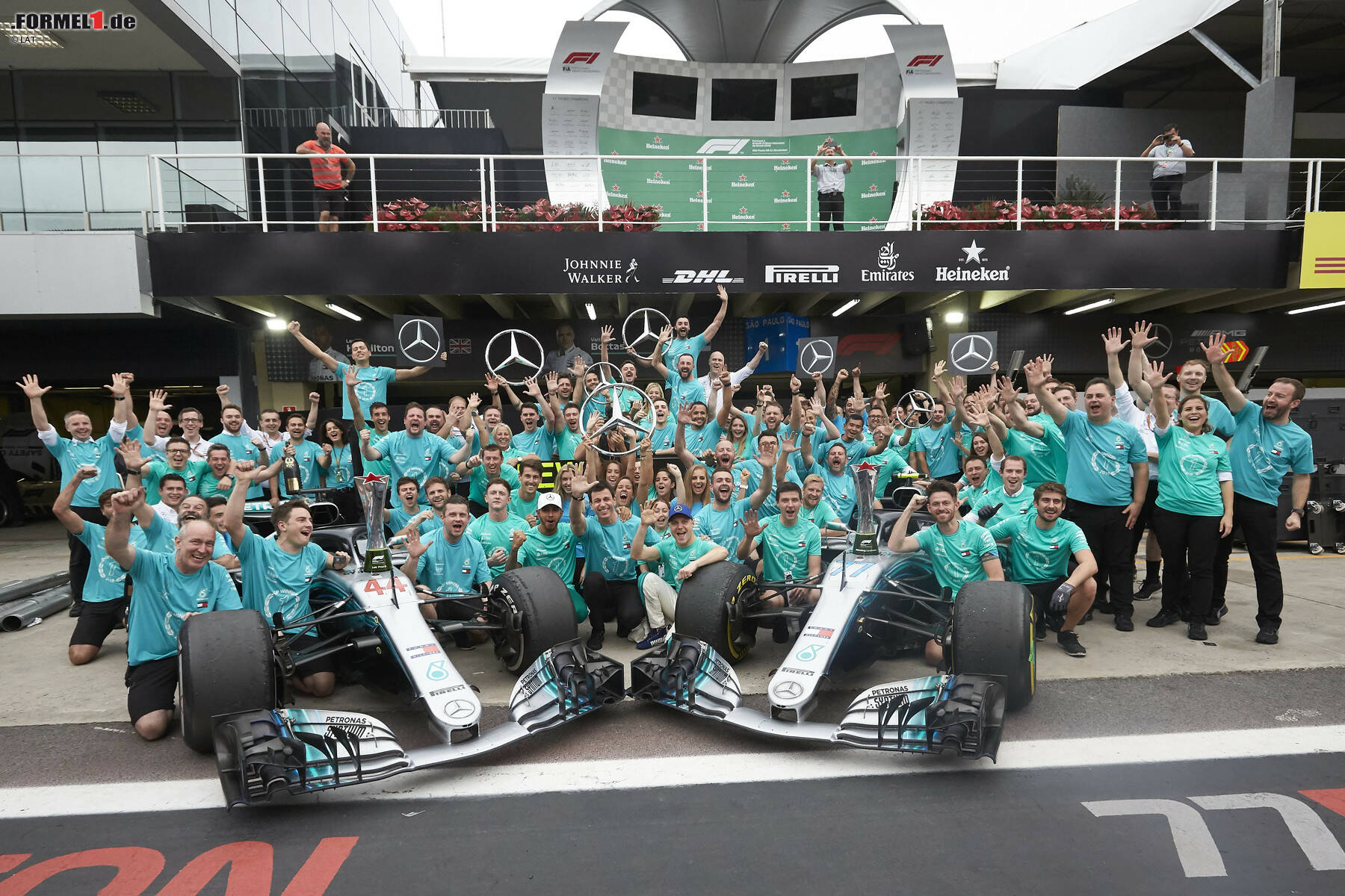 So schön jubelt das Mercedes-Team in Brasilien über den Gewinn der Konstrukteurs-WM - Lewis Hamilton gerührt: "Vielleicht mein bester Moment in diesem Team"