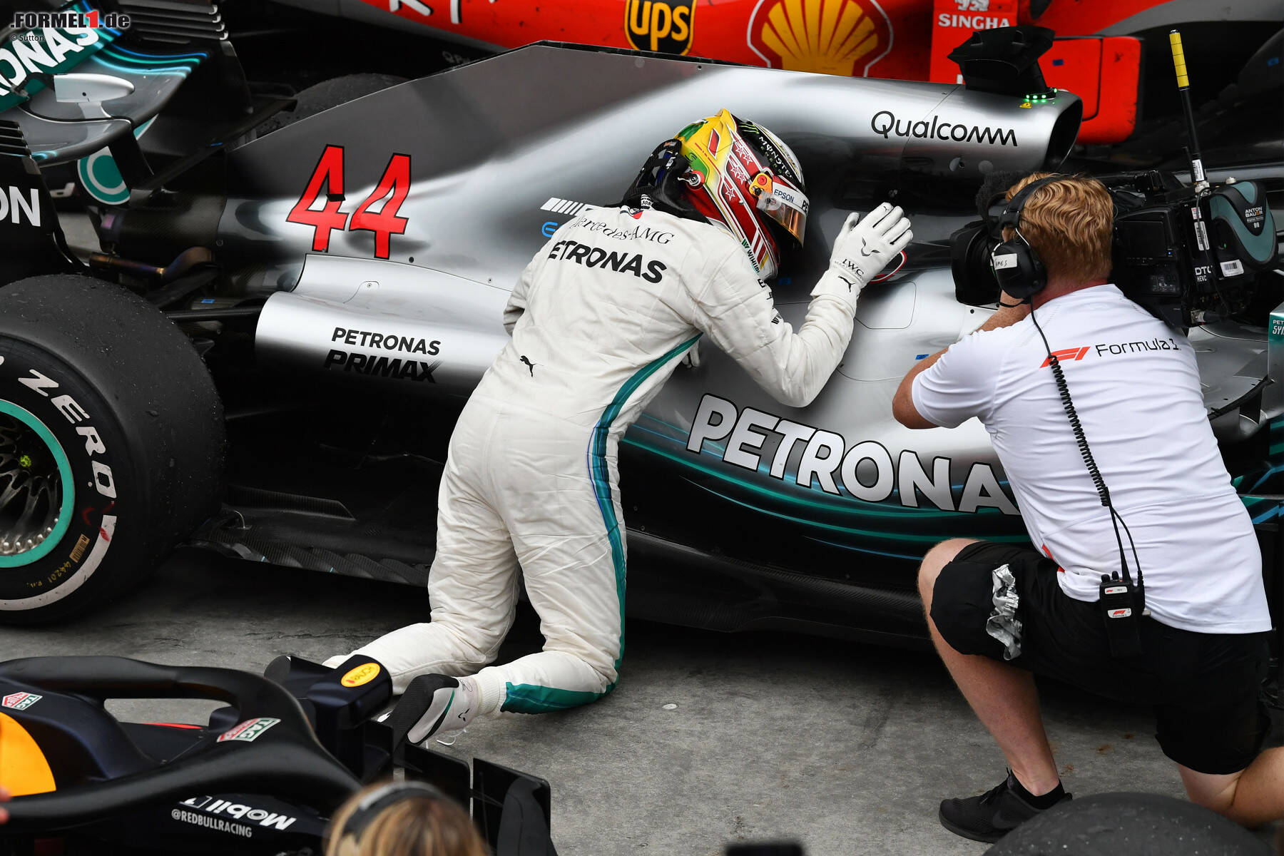 Plötzlich löste sich bei Hamilton die ganzen Anspannung, die sich ein Jahr lang aufgestaut hatte - aber auch bei Wolff. Der Österreicher ließ seinen Gefühlen nach der Zieldurchfahrt freien Lauf, setzte im Parc ferme zum Sprung über die Mechaniker an, um zu Hamilton zu kommen - eine Szene, die in einer besonders emotionellen Umarmung endete. Happy End.