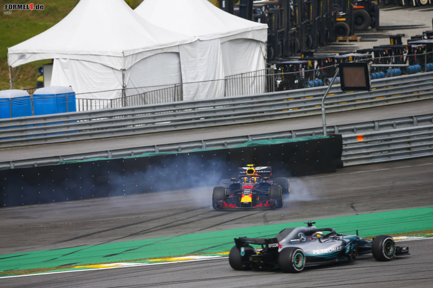 Max Verstappen hat seine Führung in Brasilien auf kuriose Weise verspielt: Der Niederländer kollidierte bei einem missglückten Manöver mit einem Überrundetem