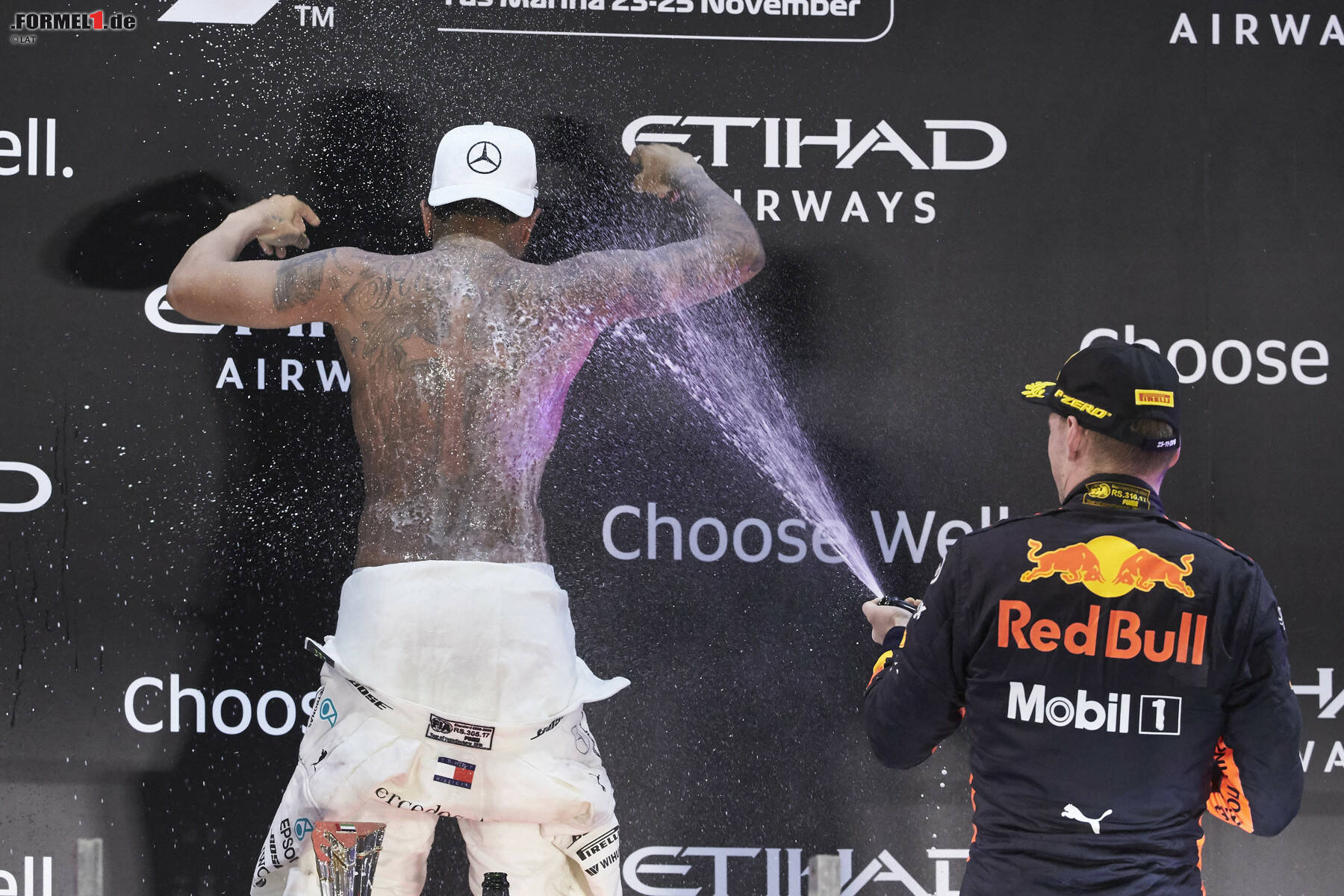 Seinen Erfolg im Abschlussrennen feierte er dann auf eine besondere Weise: Er zog sich aus! Bevor es zum Champagnerspritzen ging, drehte sich der Mercedes-Pilot plötzlich um und zeigte seinen nackten Oberkörper. "Ein bisschen Angeber", scherzt Motorsportchef Toto Wolff und will beim nächsten Mal Teammanager Ron Meadows mit auf das Podium schicken. "Der muss sich dann auch das T-Shirt ausziehen, aber das ist dann weniger schön."