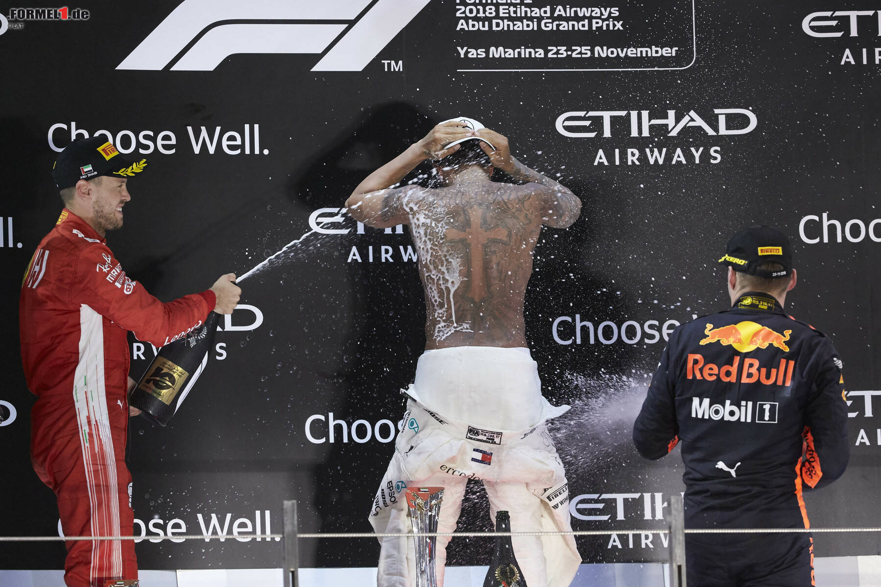 Vor der Champagnerzeremonie gibt der Brite plötzlich den Blick auf seinen Oberkörper frei.