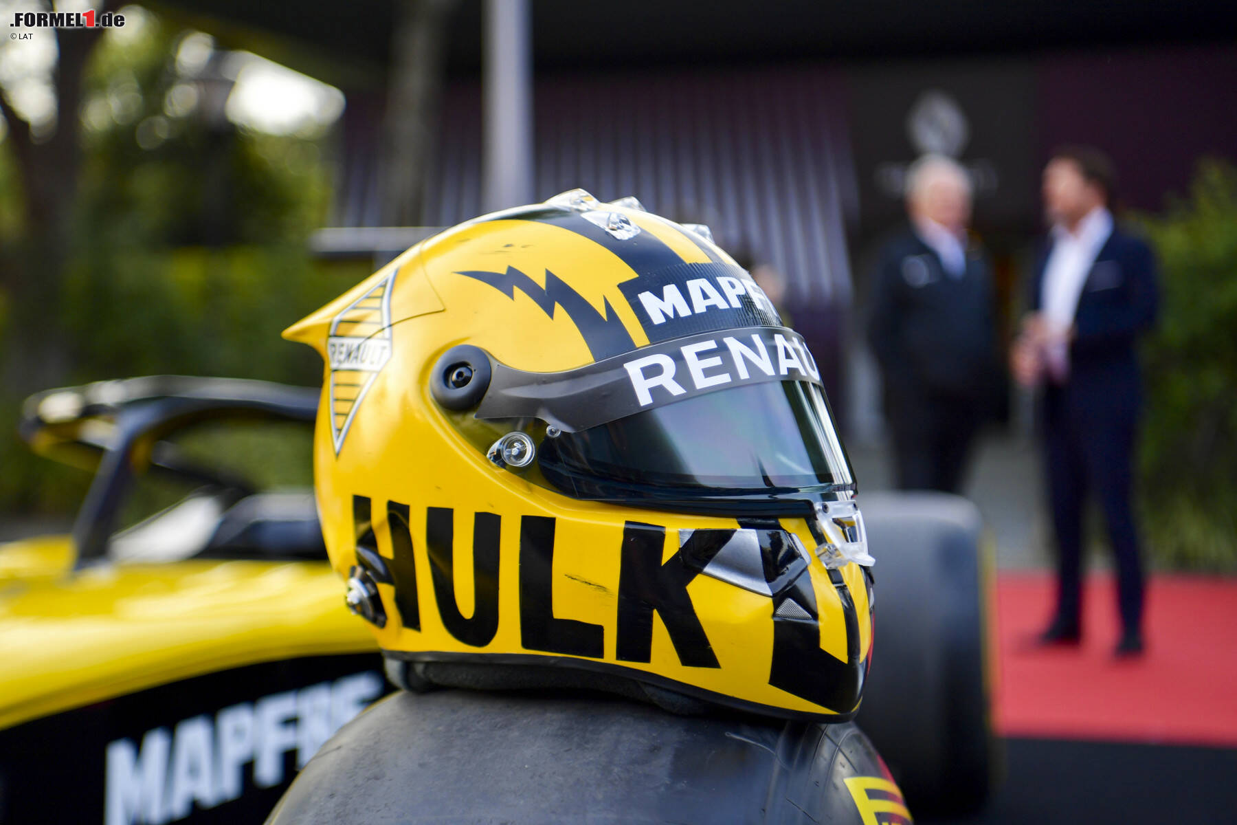 Teamkollege Nico Hülkenberg wollte ebenfalls einen Retro-Helm zum Jubiläum. "Jeder hat für dieses Rennen einen besonderen Helm und das ist meine Version davon. Wir sind beim Design ein wenig in der Zeit zurückgegangen, ein wenig Retro. Mir gefällt es sehr."
