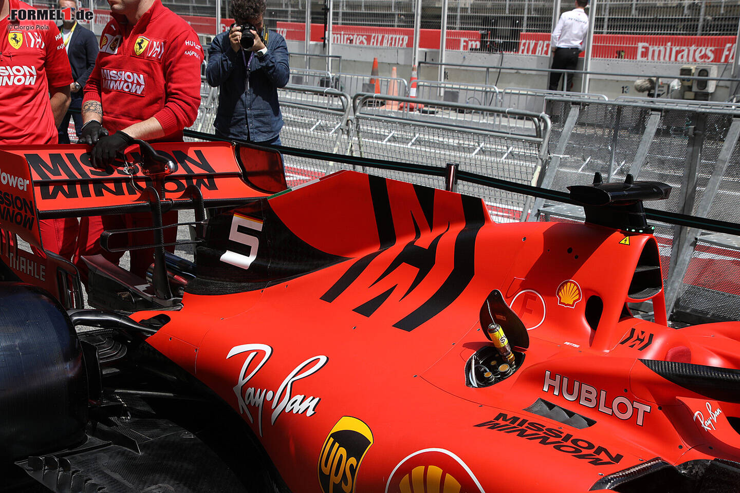 Konkurrent Ferrari setzt zum Beispiel auf eine neue Motorenabdeckung, die über eine dreieckige Aussparung direkt hinter dem Lufteinlass verfügt. Die Position legt nahe, dass Ferrari die Karosserie in diesem Bereich verengt hat. Die Finne wird verwendet, um den Luftstrom der Motorenabdeckung aufzusammeln und zu bereinigen, bevor er zum Heckflügel weitergeleitet wird.