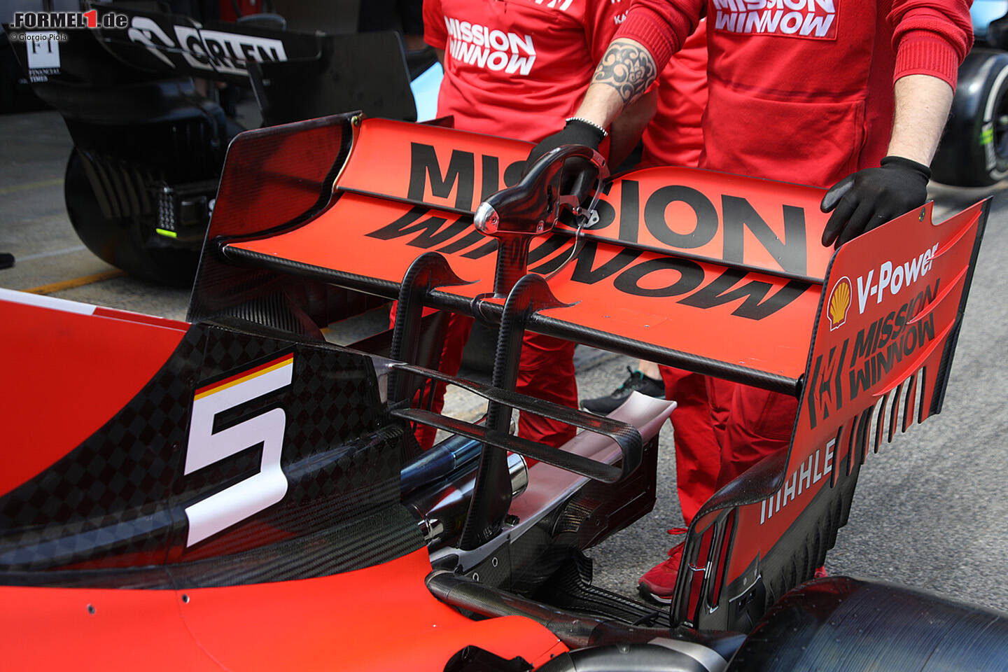 Konkurrent Ferrari setzt zum Beispiel auf eine neue Motorenabdeckung, die über eine dreieckige Aussparung direkt hinter dem Lufteinlass verfügt. Die Position legt nahe, dass Ferrari die Karosserie in diesem Bereich verengt hat. Die Finne wird verwendet, um den Luftstrom der Motorenabdeckung aufzusammeln und zu bereinigen, bevor er zum Heckflügel weitergeleitet wird.