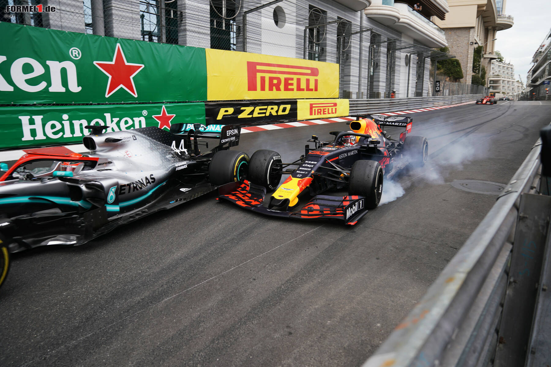 Hasan Bratic von Sutton Images hat in Monaco den entscheidenden Moment festgehalten: den Zusammenstoß zwischen Hamilton und Verstappen
