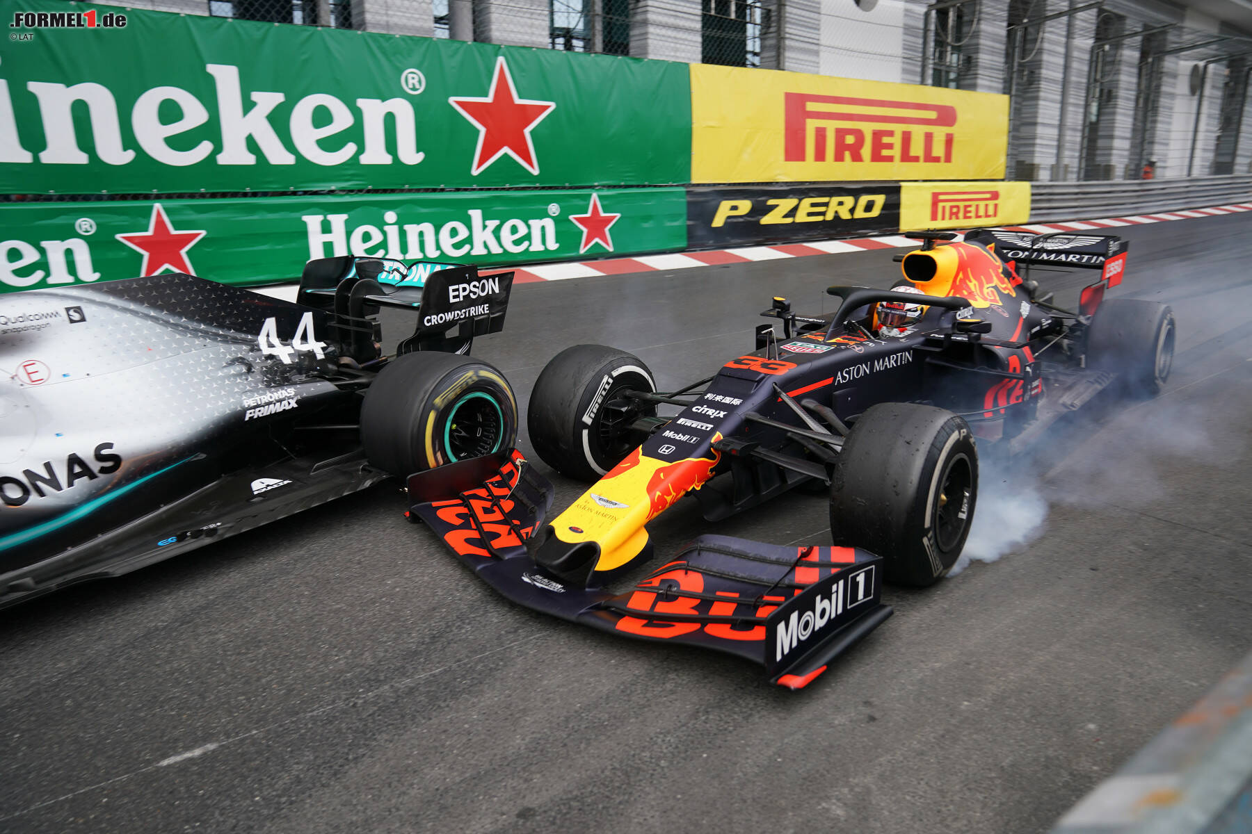 Hasan Bratic von Sutton Images hat in Monaco den entscheidenden Moment festgehalten: den Zusammenstoß zwischen Hamilton und Verstappen