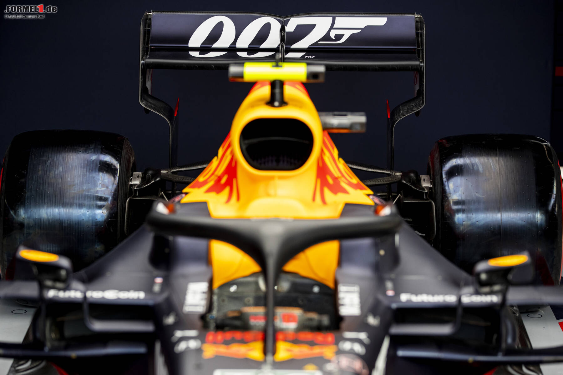 Außerdem wird die Rückseite der Heckflügel jeweils im Stil eines Nummernschildes aus den historischen Bond-Filmen lackiert sein. Max Verstappen wird das Nummernschild des Aston Martin DB5 aus Goldfinger (1964) bekommen, Teamkollege Pierre Gasly das des Aston Martin V8 aus Der Hauch des Todes (1987).