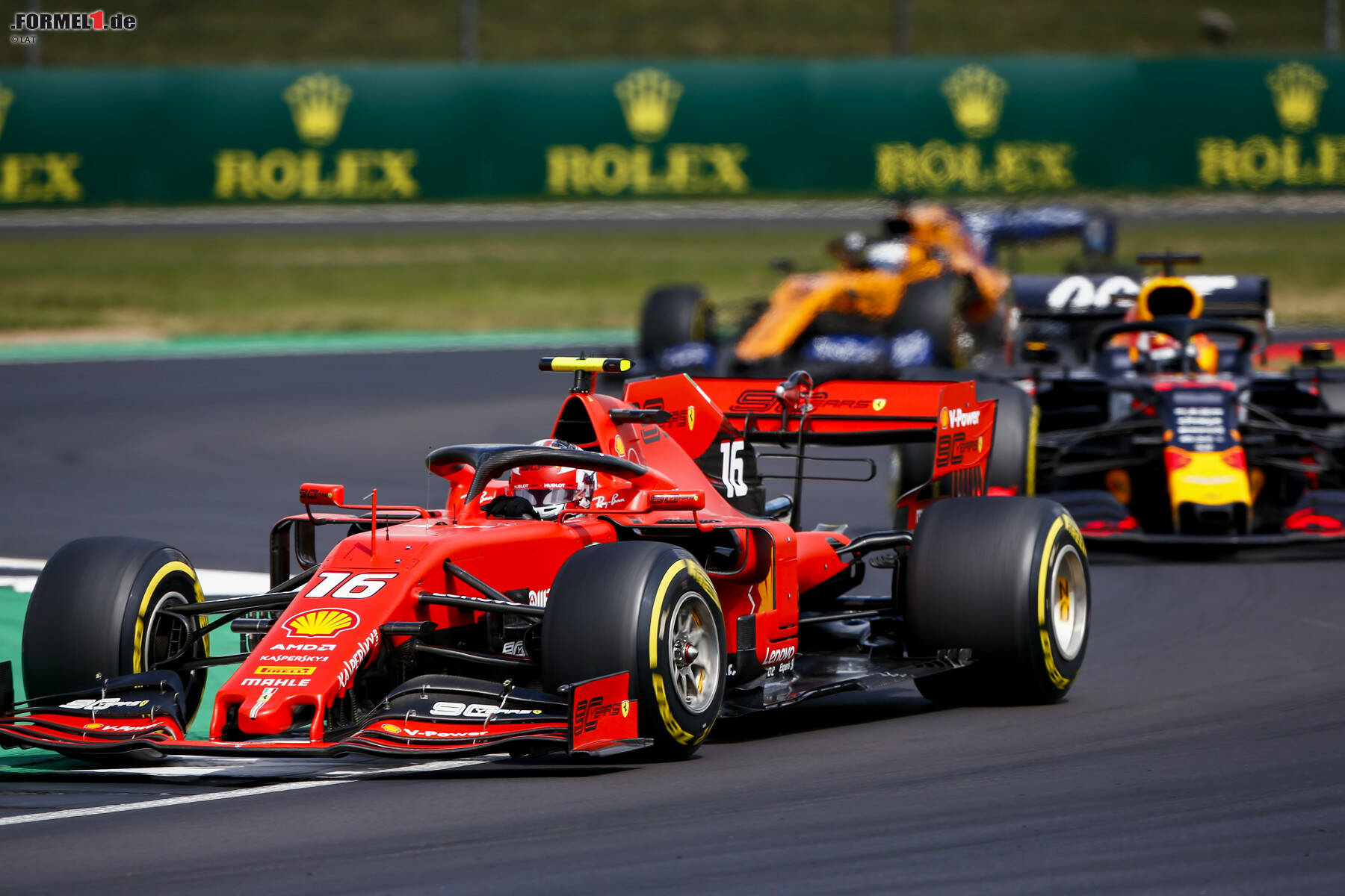 In Runde 19 hat es Verstappen eigentlich schon geschafft: Er zieht vor Stowe an Leclerc vorbei. Doch dessen Defensivmanöver müssen den Niederländer irgendwie aus der Fassung gebracht haben. In einem kurzen Moment wird der Red Bull am Einlenkpunkt auf der Innenbahn außergewöhnlich langsam und irgendwie setzt sich Leclerc außen herum wieder durch.