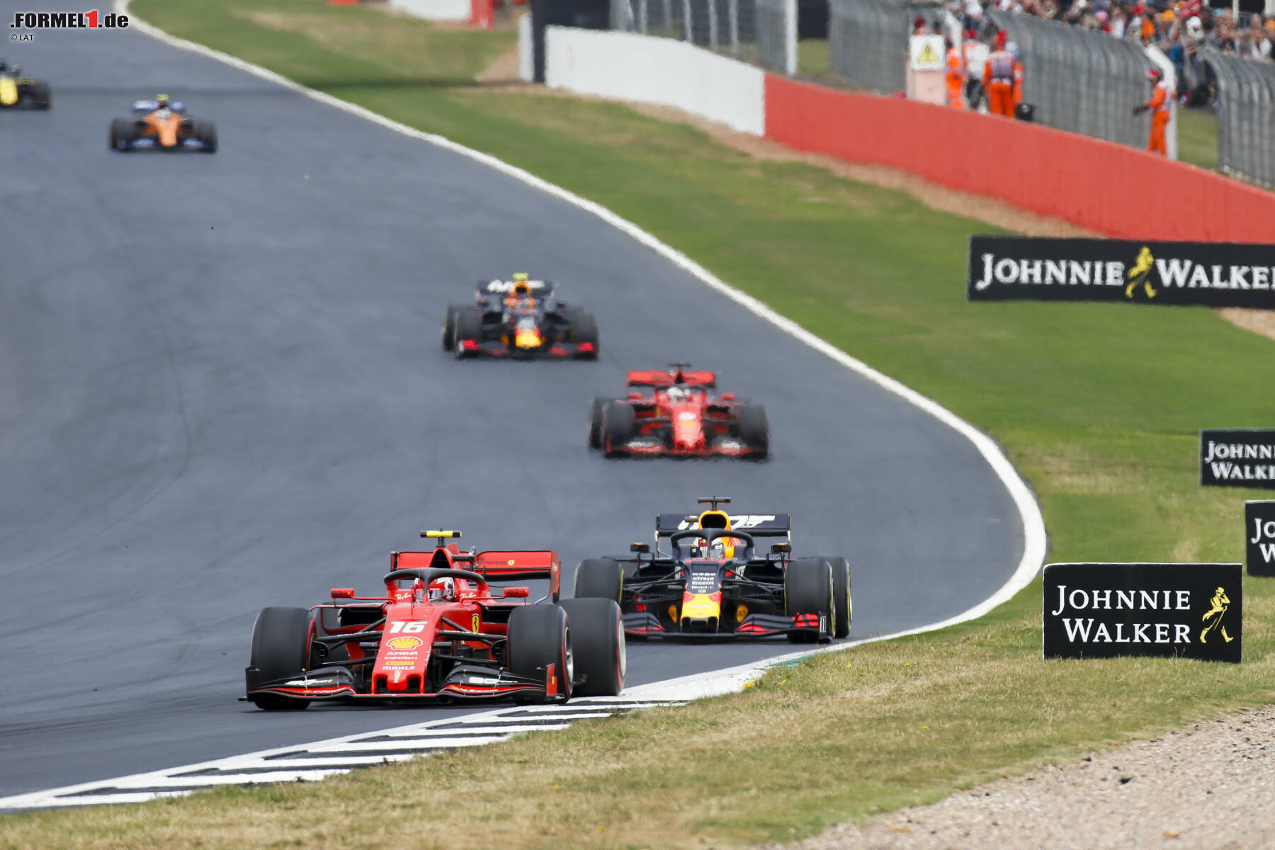 Die nächsten Runden über bekamen die Fans ein Duell zu sehen, von dem sie noch ihren Enkelkindern erzählen werden. Der Red Bull und der Ferrari bekämpften sich nach allen Regeln der Kunst und am absoluten Limit, aber immer mit Respekt. Leclerc wehrte alle Angriffe ab. Verstappen konnte mit DRS-Hilfe attackieren, doch die Geraden des Silverstone Circuit erwiesen sich als leicht zu kurz.