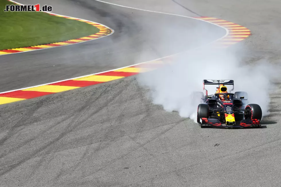 Verstappens Radaufhängung hält den Belastungen nicht mehr Stand. Er kann nicht mehr lenken ...