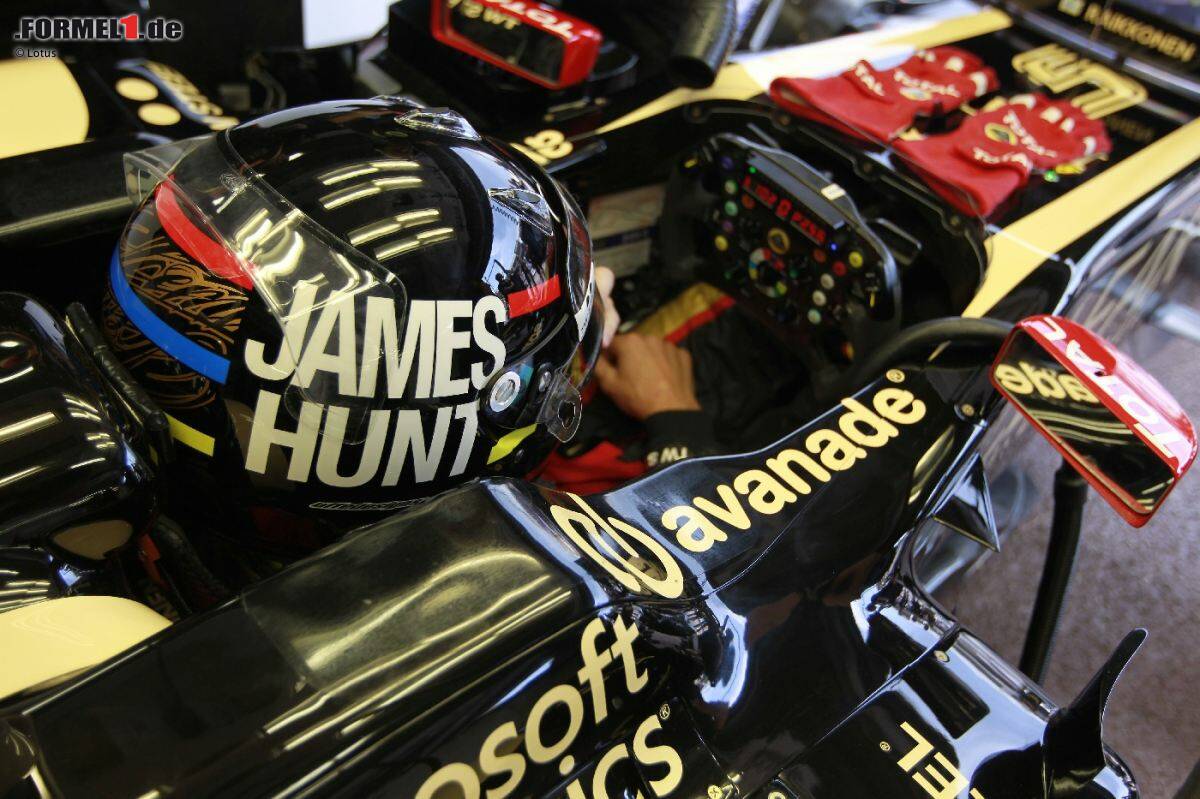 Na, wer weiß noch, wer sich hier versteckt? Es ist Kimi Räikkönen, der ein bekennender Fan von James Hunt ist. Er geht 2012 - ebenfalls in Monaco - mit dem Design des Champions von 1976 an den Start. Das Rennen im Fürstentum beendet er am Ende als Neunter.