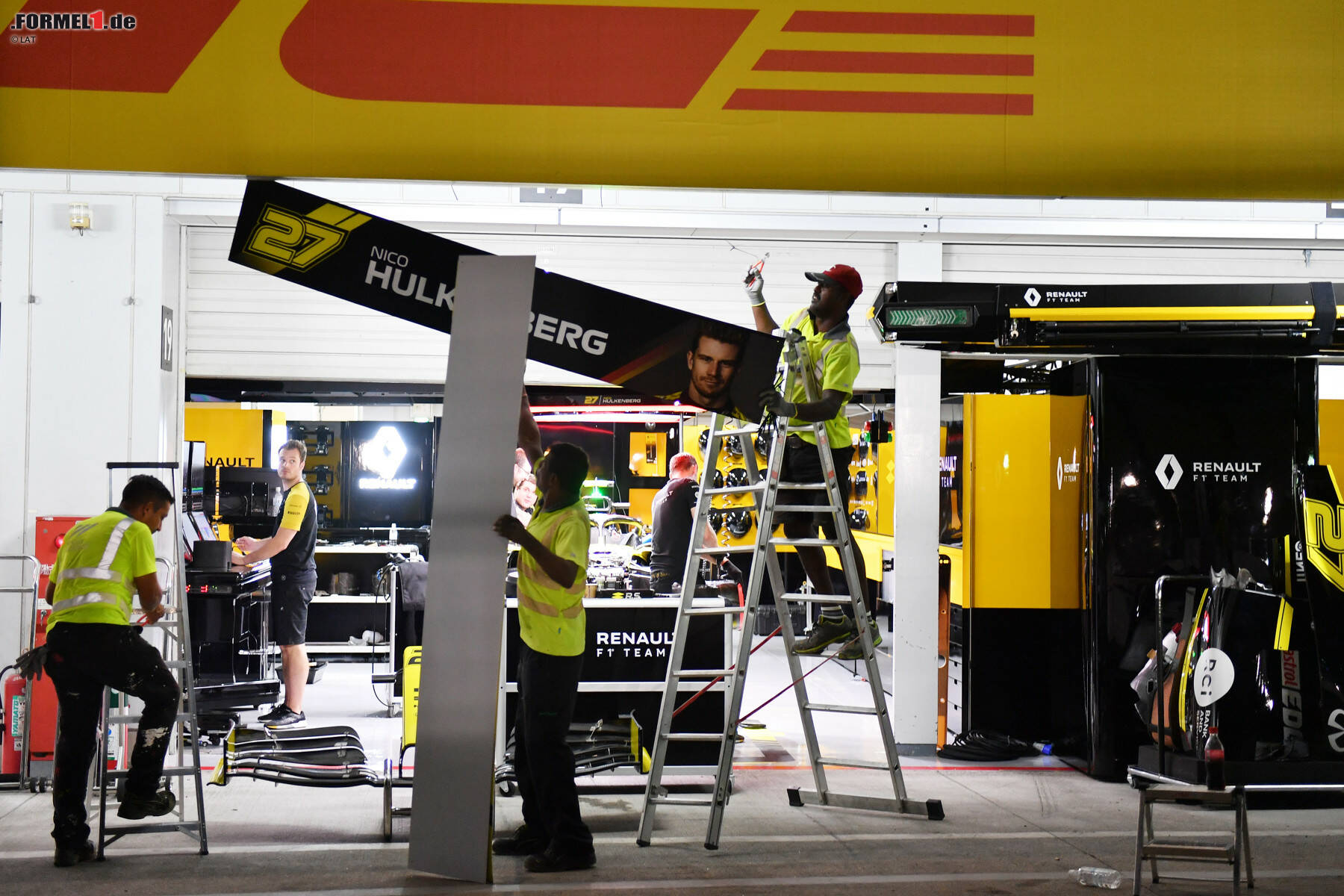Zum Beispiel wurden die Schilder an den Garagen entfernt und auch die Boxengassen-Häuschen der Teams wieder abgebaut. Die Lagerung von wichtigem Gerät wurde nicht in Bodennähe empfohlen, da Überschwemmungen nicht auszuschließen sind.