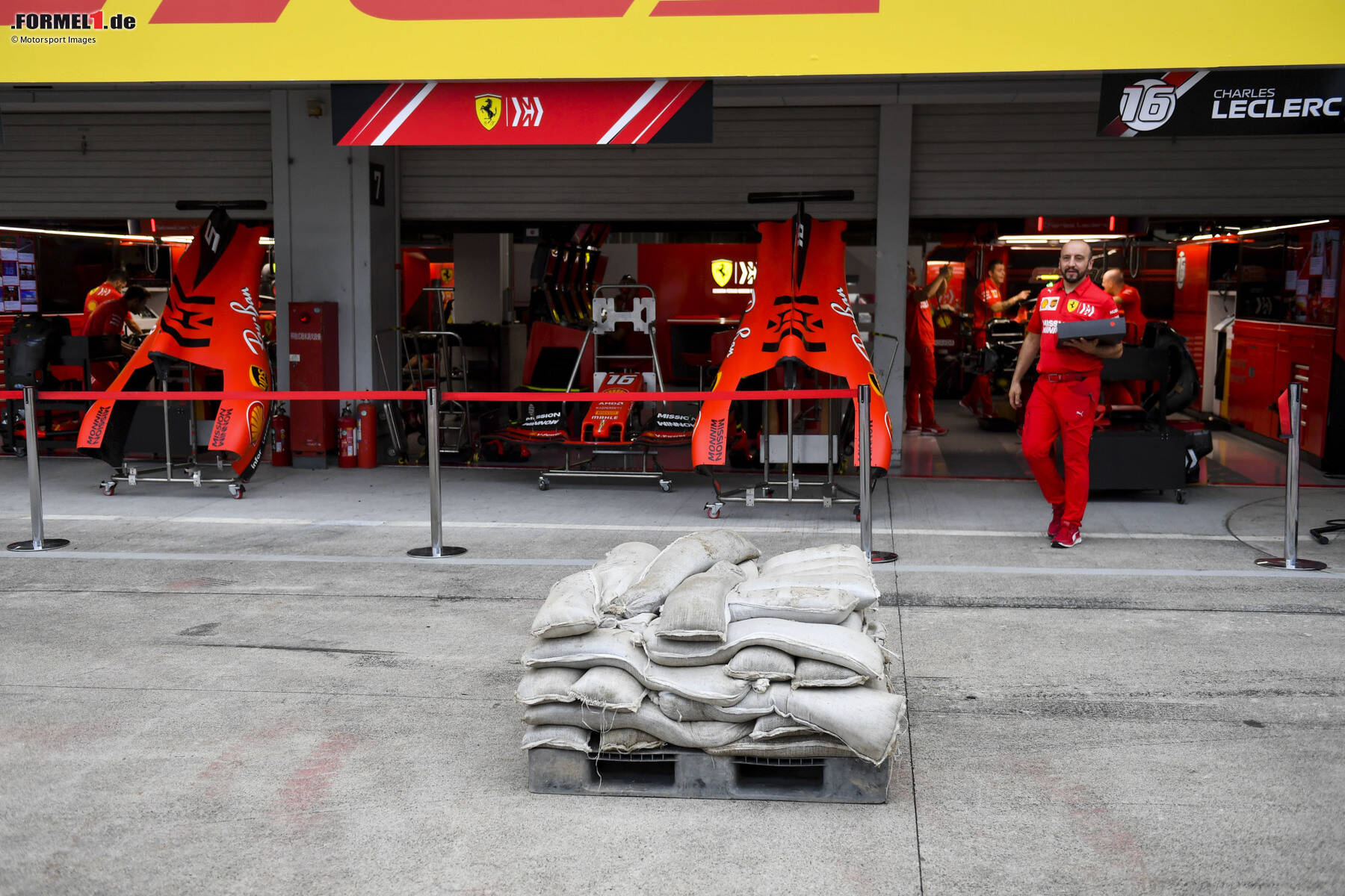 Zum Beispiel wurden die Schilder an den Garagen entfernt und auch die Boxengassen-Häuschen der Teams wieder abgebaut. Die Lagerung von wichtigem Gerät wurde nicht in Bodennähe empfohlen, da Überschwemmungen nicht auszuschließen sind.