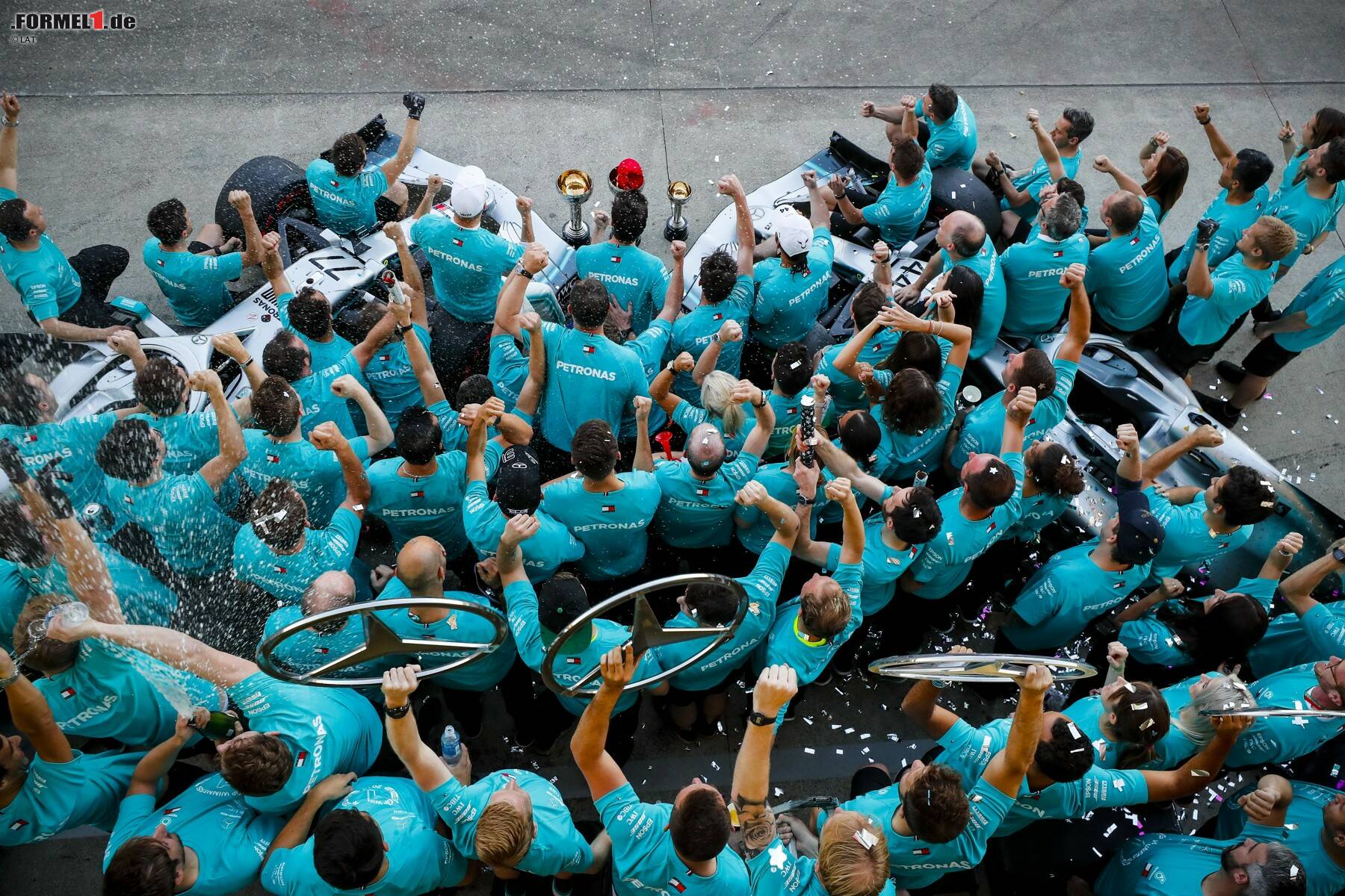 Dennoch gelang Mercedes die Wende im Rennen, wodurch man beide Weltmeistertitel besiegelte. "Das Schwierige ist nun, morgen diese Emotionen hinter sich zu lassen und sich auf die Arbeit an der nächsten Meisterschaft zu stürzen."