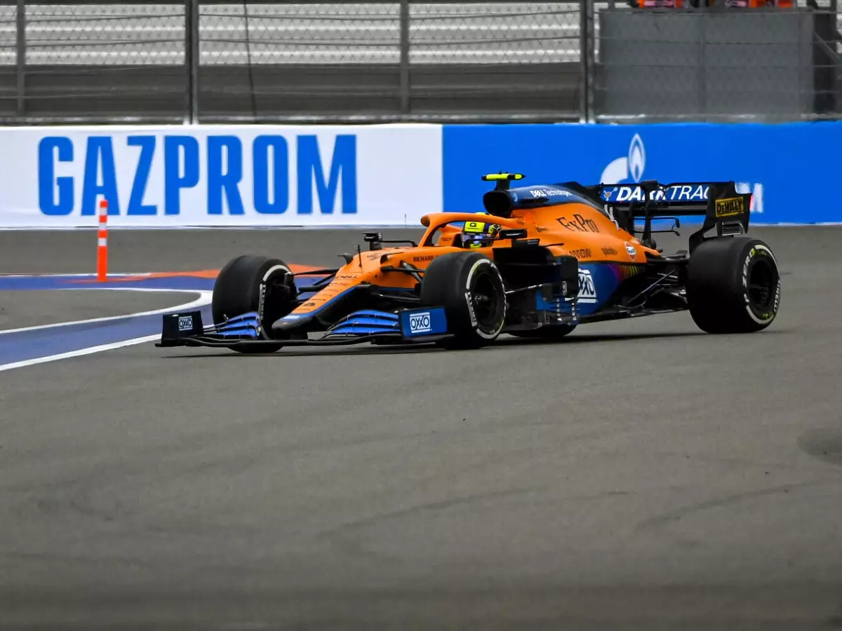 (Motorsport-Total.com) - Runde 51 im Russland-Grand-Prix 2021 in Sotschi: Lando Norris bewegt seinen McLaren MCL35M auf Slicks zurück in die Boxengasse, weil Intermediates jetzt die bessere Wahl sind. Doch bei der Einfahrt rutscht Norris auf nasser Fahrbahn über die weiße Linie hinaus und kreuzt sie ein zweites Mal, um zurück in die Boxengasse zu gelangen. Darauf steht eine Strafe. Eigentlich. Doch Norris wird nur verwarnt.