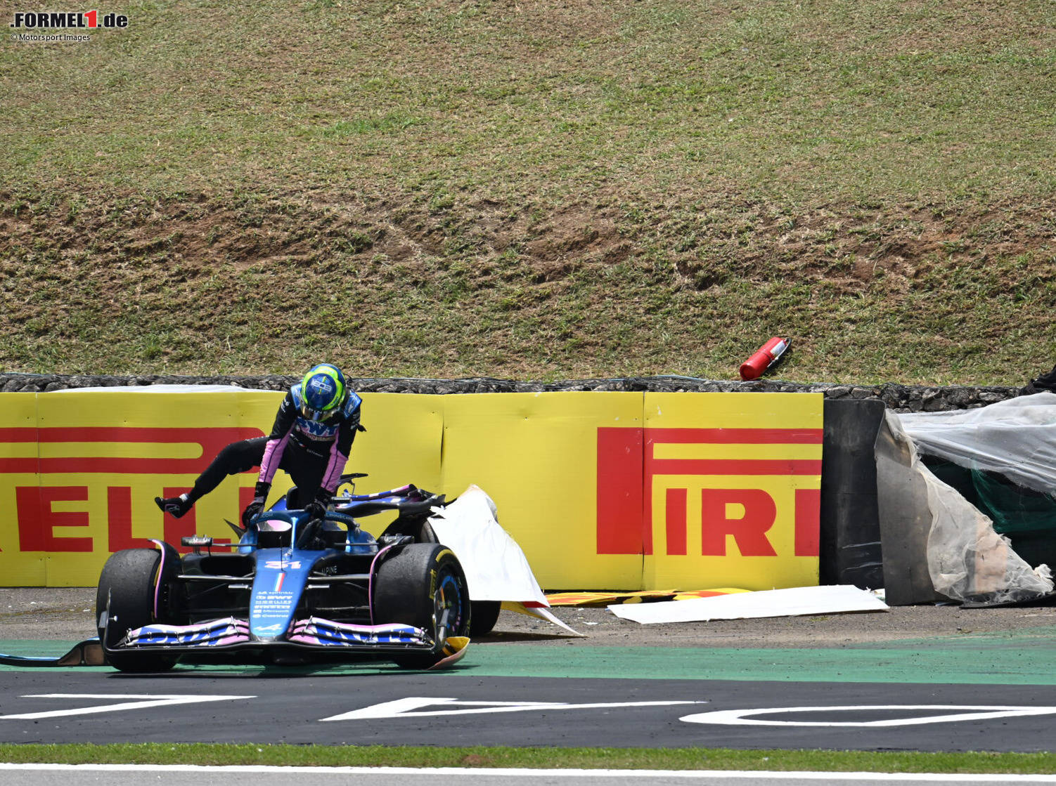 Esteban Ocon steigt nach dem Unfall mit Fernando Alonso aus dem Auto Zoom Download