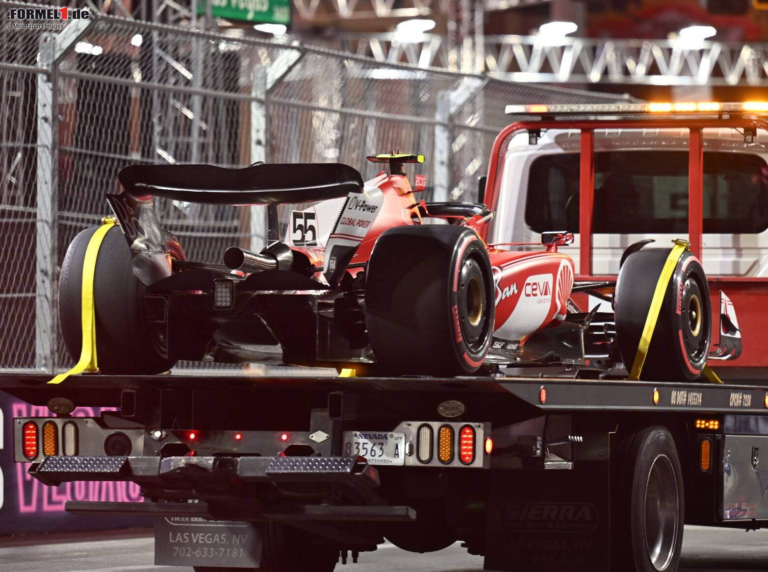 Der Ferrari SF-23 von Carlos Sainz auf einem Abschleppfahrzeug in Las Vegas 2023 Download
