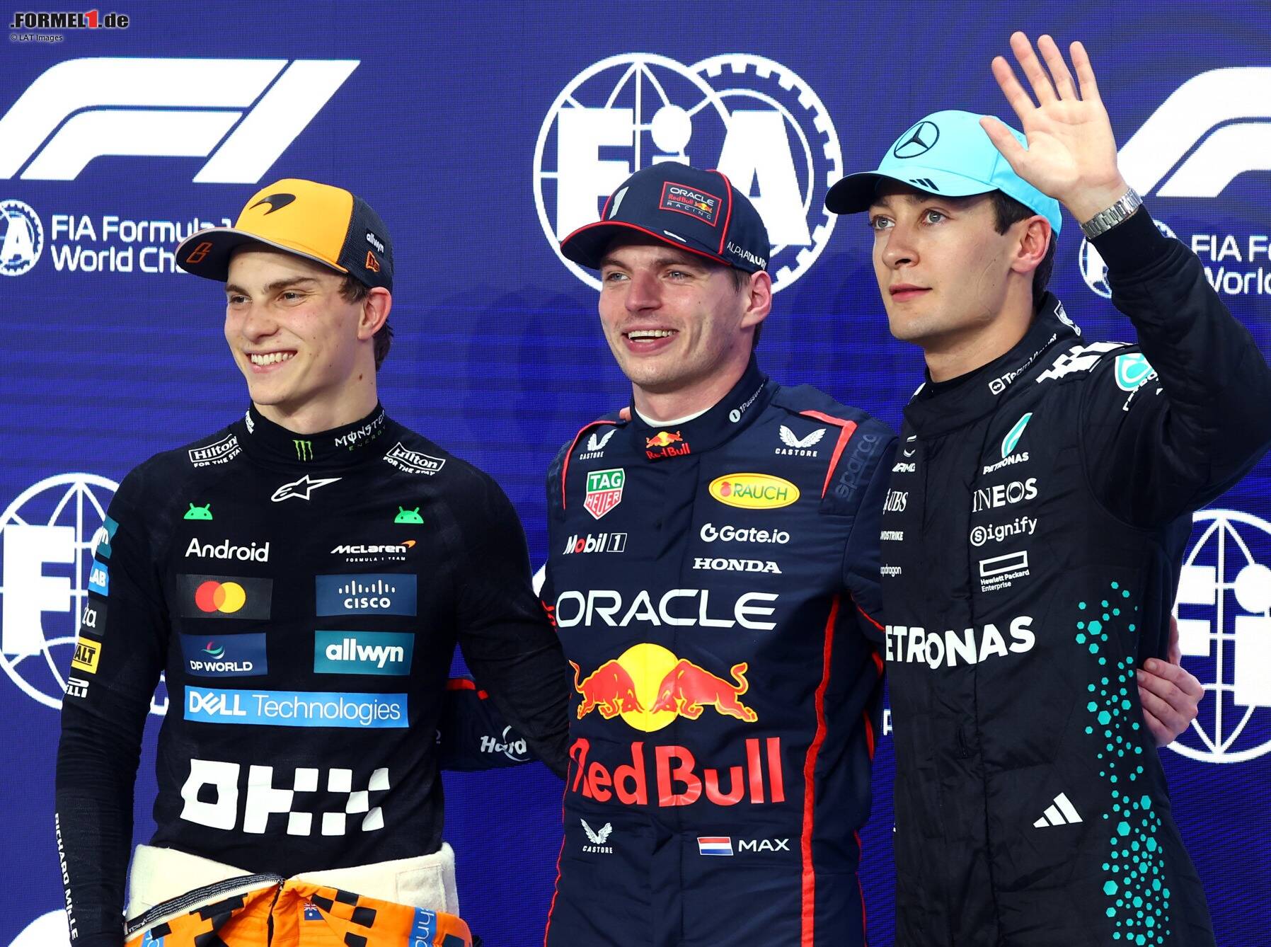 Verstappens Bestzeit hielt nur, bis Russell kam, der ihm 0,152 Sekunden abnahm. Jetzt stand Piastri unter maximalem Druck - und dem hielt er zunächst mal stand: 1:27.304 Minuten, Bestzeit! Aber Verstappen konnte nochmal nachlegen, fuhr Bestzeit im ersten Sektor - und hatte am Ende 0,010 Sekunden Vorsprung. Sehr zur Freude von Helmut Marko, der vor Beginn des Qualifyings noch erklärt hatte, dass Red Bull "zu 100 Prozent" nicht auf Pole fahren werde.