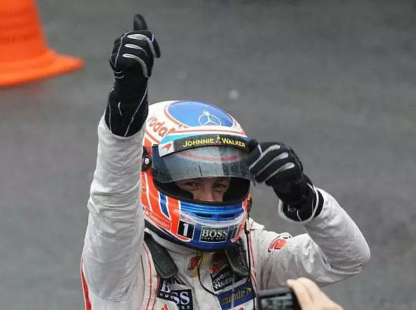 Button: "Ja, das hat sie. Es war eines der härtesten Rennen, die ich je hatte. Es war sehr schwierig. Es gab so oft den Zeitpunkt, an dem Intermediates die richtige Wahl zu sein schienen. Ich habe ständig beim Team nachgefragt: 'Was ist mit dem Wetter? Es soll leicht regnen?' Ich habe in einem Rennen noch nie so viel mit meinem Renningenieur gesprochen. Wir haben schon zugesehen, dass wir klarkommen, aber es war so schwierig. Hier und da blockieren die Räder, aber du musst immer das Limit suchen."