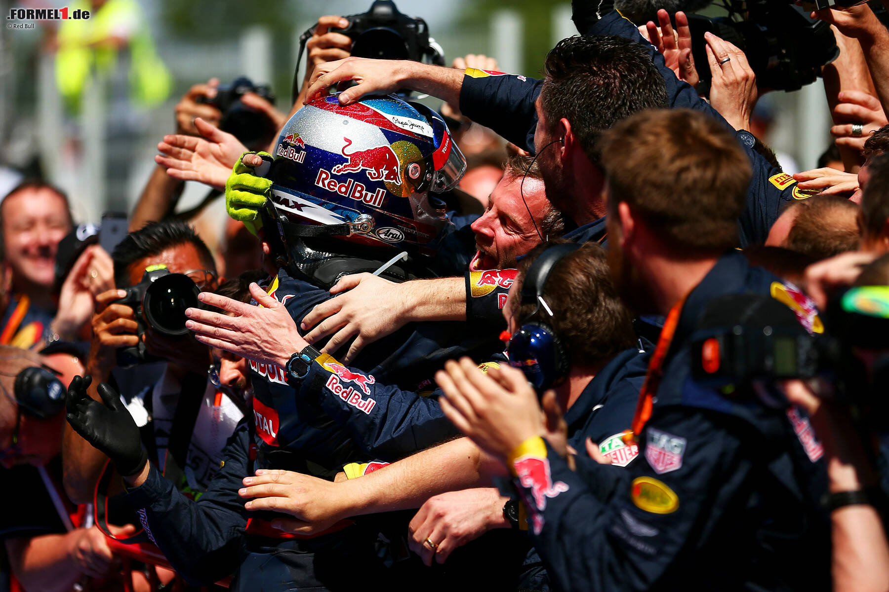 Die erfolgsverwöhnten Red-Bull-Mechaniker haben endlich wieder Grund zum Feiern, ...