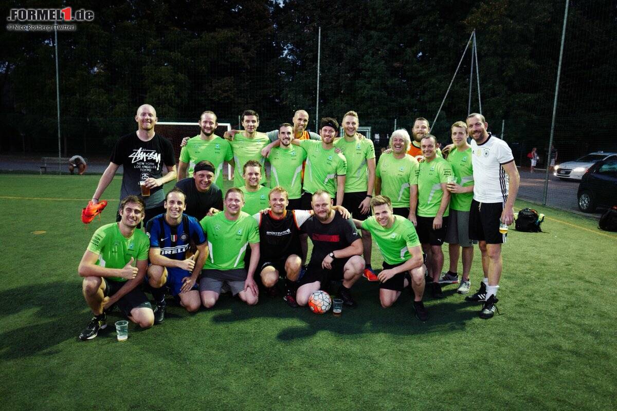 Zur Vorbereitung auf das Rennwochenende geht's auf den Fußballplatz mit der Mercedes-Boxencrew. Dass die bei Rosberg langsamer arbeitet als bei Lewis Hamilton, macht im Rennen zum Glück keinen Unterschied.