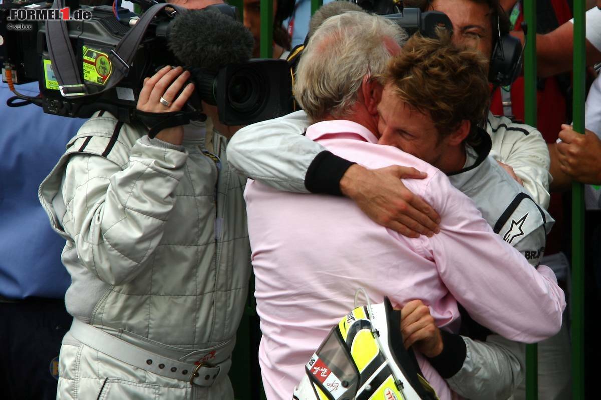 Button: "Erstaunlich, nicht wahr? Sollte jemals jemand einen Film über die Formel 1 machen, dann bitte darüber! Jeder liebt die Geschichten, wie es kleine Teams mit den Großen aufnehmen und am Ende gewinnen. Das war so eine, etwas ganz Besonderes. Im Winter hatte ich keinen Job, aber dann gewann ich plötzlich die ersten paar Rennen. Danach kamen die schwierigeren Rennen, aber am Ende habe ich das Ding trotzdem gewonnen, mit einer tollen Aufholjagd. Das war schon etwas ganz Besonderes."
