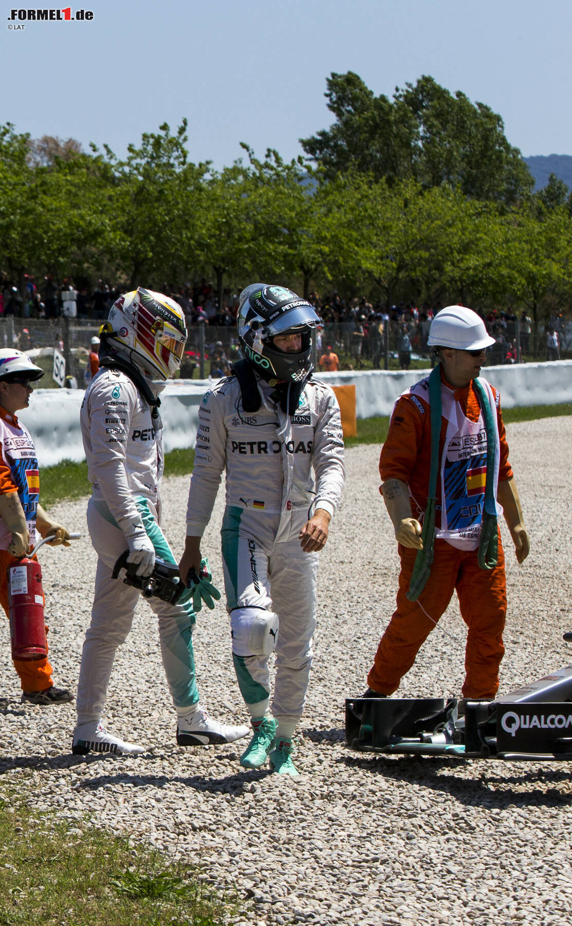 Nach dem Zwischenfall gab es ein erstes Krisenmeeting im Mercedes-Truck. Toto Wolff, Paddy Lowe und Ron Meadows knöpften sich die beiden Fahrer in Einzelgesprächen vor. Irgendwann etwas später kamen, das war im TV zu sehen, Lauda und Daimler-Entwicklungsvorstand Thomas Weber dazu. Als die ersten Emotionen beruhigt waren und man sich auf eine Kommunikationslinie geeinigt hatte, ging es erst mal zum Hearing bei den FIA-Rennkommissaren. Die befanden: Rennunfall, keine Strafen notwendig.