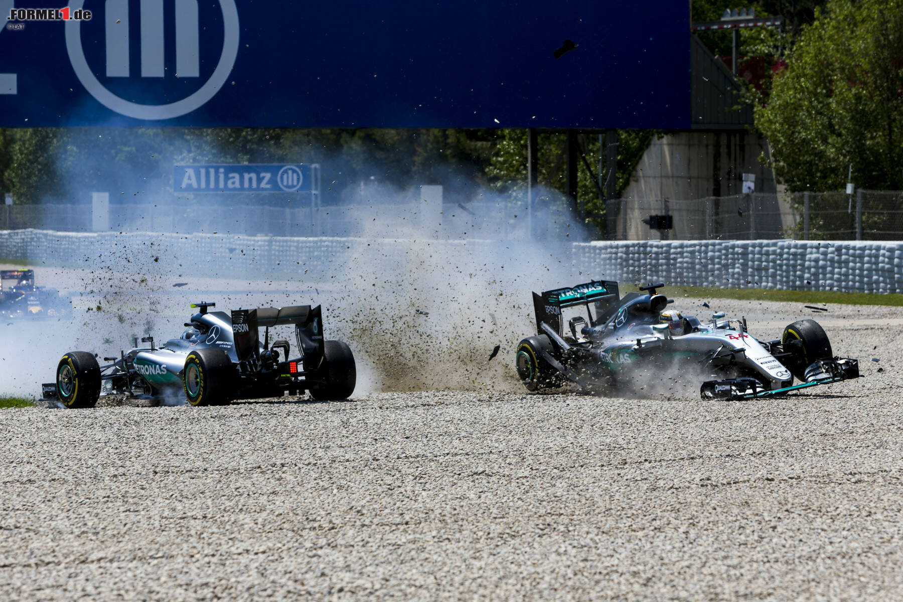 Rosberg geht dann noch vor der ersten Kurve an Hamilton vorbei in Führung. Mitten in der Kurvenkombination merkt er aber, dass etwas nicht stimmt. Ein rotes Licht blinkt, weil das Hybridsystem Energie auflädt. Dadurch fehlen 160 PS, und Hamilton hat plötzlich mehr Schwung. Rosberg drückt verzweifelt den Überholknopf, um den Hybrid-Boost zu aktivieren. Der ist aber im Safety-Car-Modus gesperrt. Kurz bevor die beiden kollidieren, beträgt der Geschwindigkeitsunterschied 17 km/h.