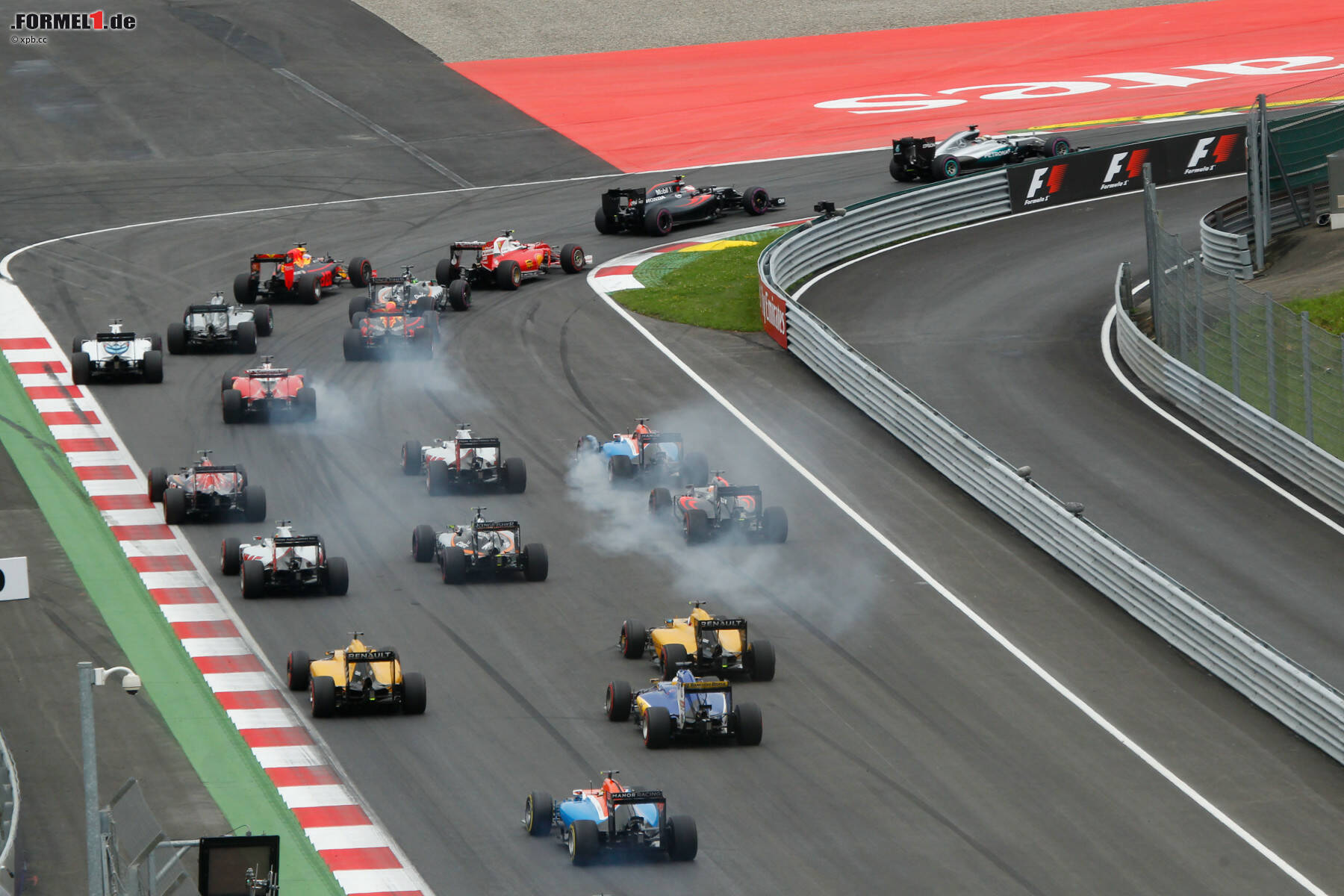 Hülkenberg verschläft den Start, Hamilton gewinnt diesen vor Button. Carlos Sainz und Sergio Perez (P10/11) holen je fünf Positionen auf. Und Felipe Massa muss aus der Box starten, weil Williams kurz vor dem Start Risse an seinem Frontflügel entdeckt.