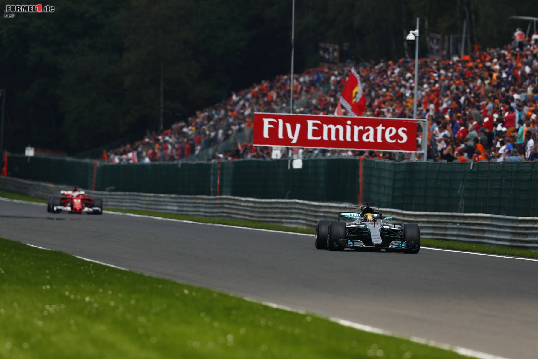 An der Spitze ist der Abstand zwischen Hamilton und Vettel, die den Sieg untereinander ausmachen, mal größer (3,5 Sekunden nach dem Boxenstopp), mal kleiner (0,6 Sekunden in Runde 17). Aber Vettel dämmert: Wenn beide auf den gleichen Reifen (Soft) durchfahren, muss er auf einen Fehler hoffen.