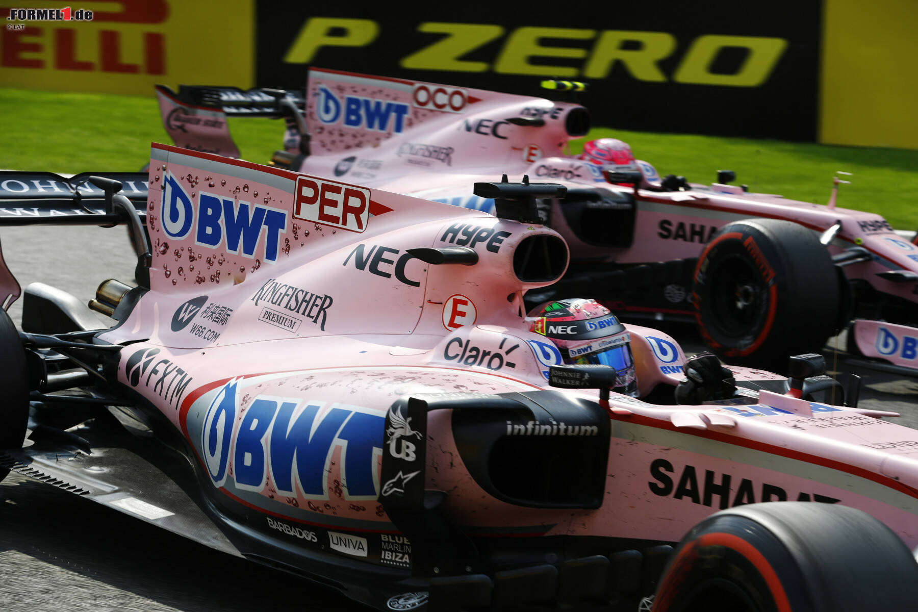 Teil 2 des Force-India-Kriegs: Ocon ist sauer, weil Perez früher Reifen wechseln durfte (wegen Zusammenlegung mit Fünf-Sekunden-Strafe) und plötzlich vor ihm liegt. Der Franzose probiert's noch einmal vor Eau Rouge - und wieder kommt es zur Kollision!