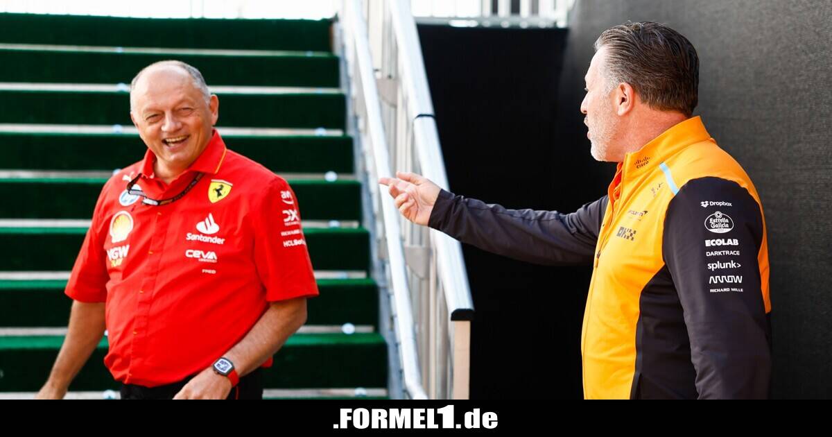 Ferrari-Teamchef Frederic Vasseur witzelt über die internen Vorschriften bei McLaren und betont, dass das Team aus Woking aktuell bestenfalls Luxusprobleme habe