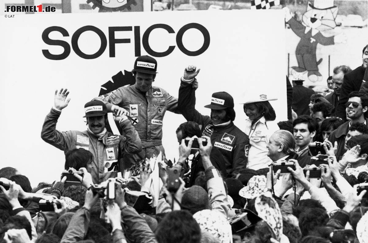 ...mit dem ersten Grand-Prix-Sieg in Laudas Karriere. 24 weitere sollten folgen, dazu 24 Pole-Positions und 24 schnellste Runden. Insgesamt 54-mal stand der gebürtige Wiener auf dem Podium und legte 1.590 Führungsrunden über 7.055,6 Kilometer zurück.