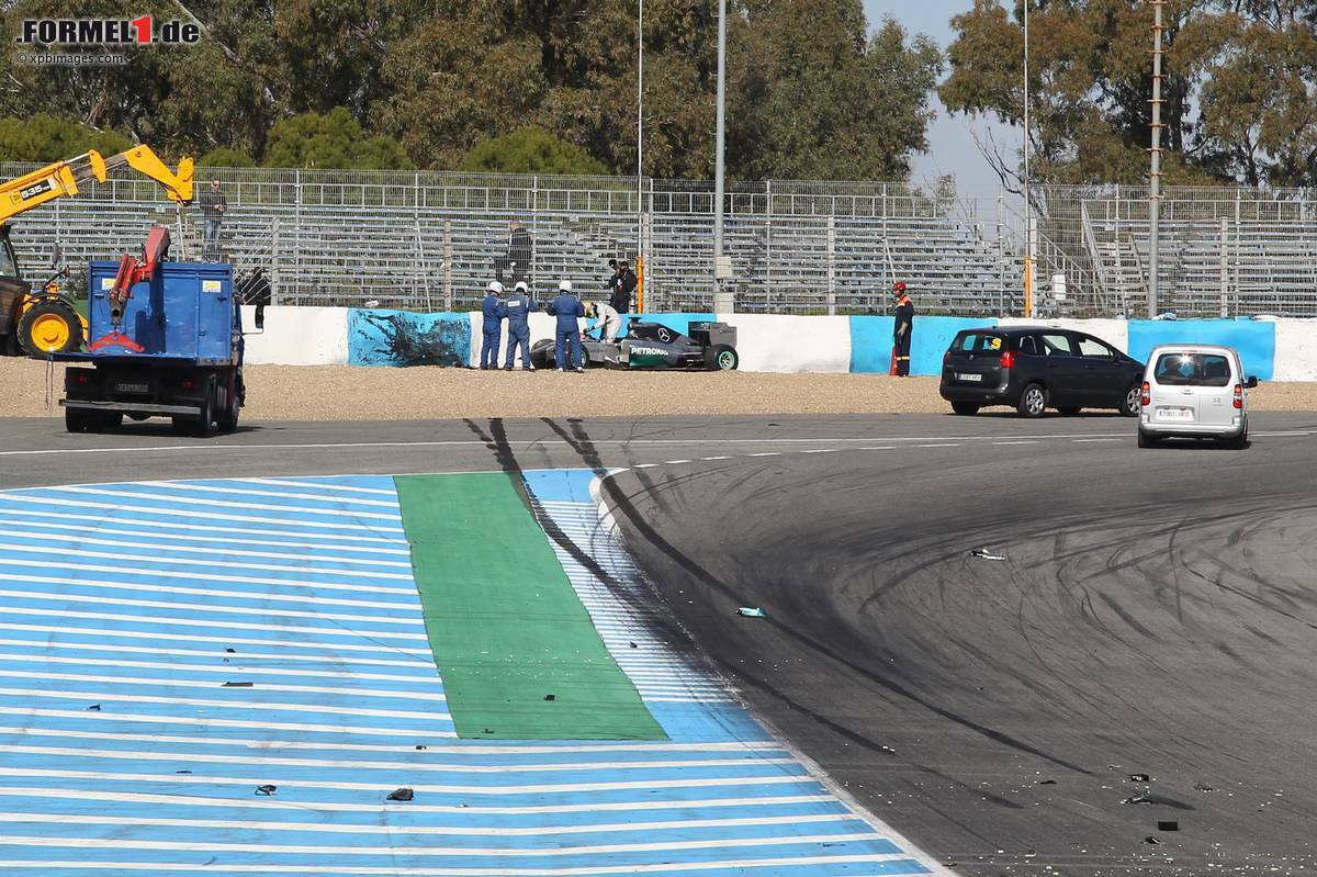 Die Bremsspuren zeigen den Weg des Mercedes-Piloten in das Kiesbett.