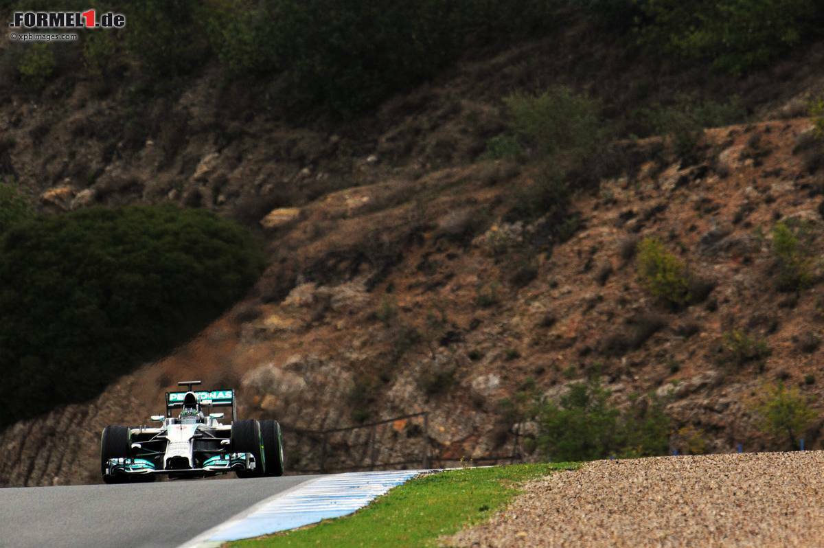 Auch wenn es am Ende nicht zur Bestzeit reichte, war der Mercedes F1 W05 der Star des Testabschlusses. Nico Rosberg schaffte am Vormittag sagenhafte 91 Runden und damit die erste Rennsimulation dieses Winters, unterbrochen nur durch drei Boxenstopps. Mit so einem Pensum hätte Mercedes offenbar gar nicht gerechnet, denn um die unterschiedlichen Rundenzahlen der beiden Fahrer auszugleichen, durfte Lewis Hamilton noch einmal ran - was nicht geplant war.