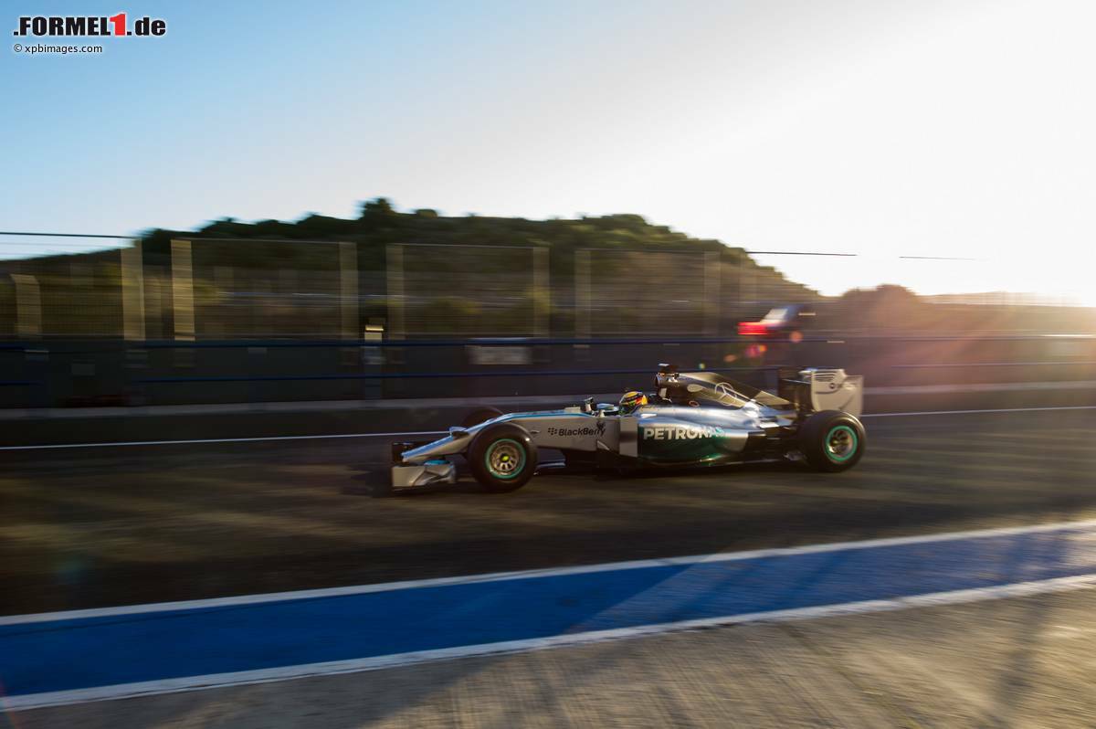 Auch wenn es am Ende nicht zur Bestzeit reichte, war der Mercedes F1 W05 der Star des Testabschlusses. Nico Rosberg schaffte am Vormittag sagenhafte 91 Runden und damit die erste Rennsimulation dieses Winters, unterbrochen nur durch drei Boxenstopps. Mit so einem Pensum hätte Mercedes offenbar gar nicht gerechnet, denn um die unterschiedlichen Rundenzahlen der beiden Fahrer auszugleichen, durfte Lewis Hamilton noch einmal ran - was nicht geplant war.